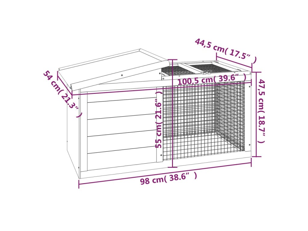 Králíkárna hnědá 100,5 x 54 x 55 cm masivní borové dřevo 172289