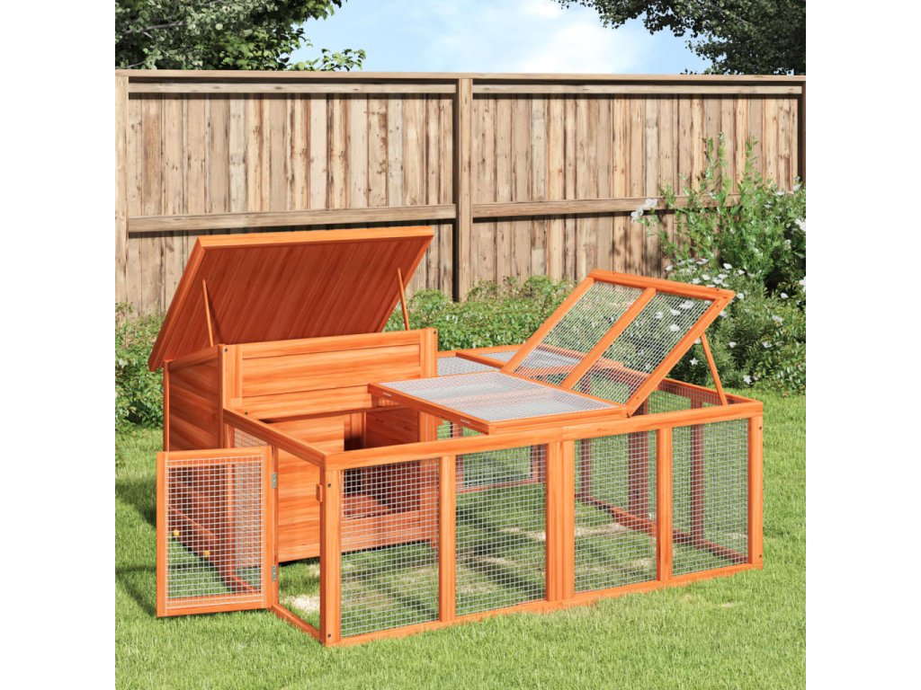 Králíkárna hnědá 144 x 123 x 67,5 cm masivní borové dřevo 172280