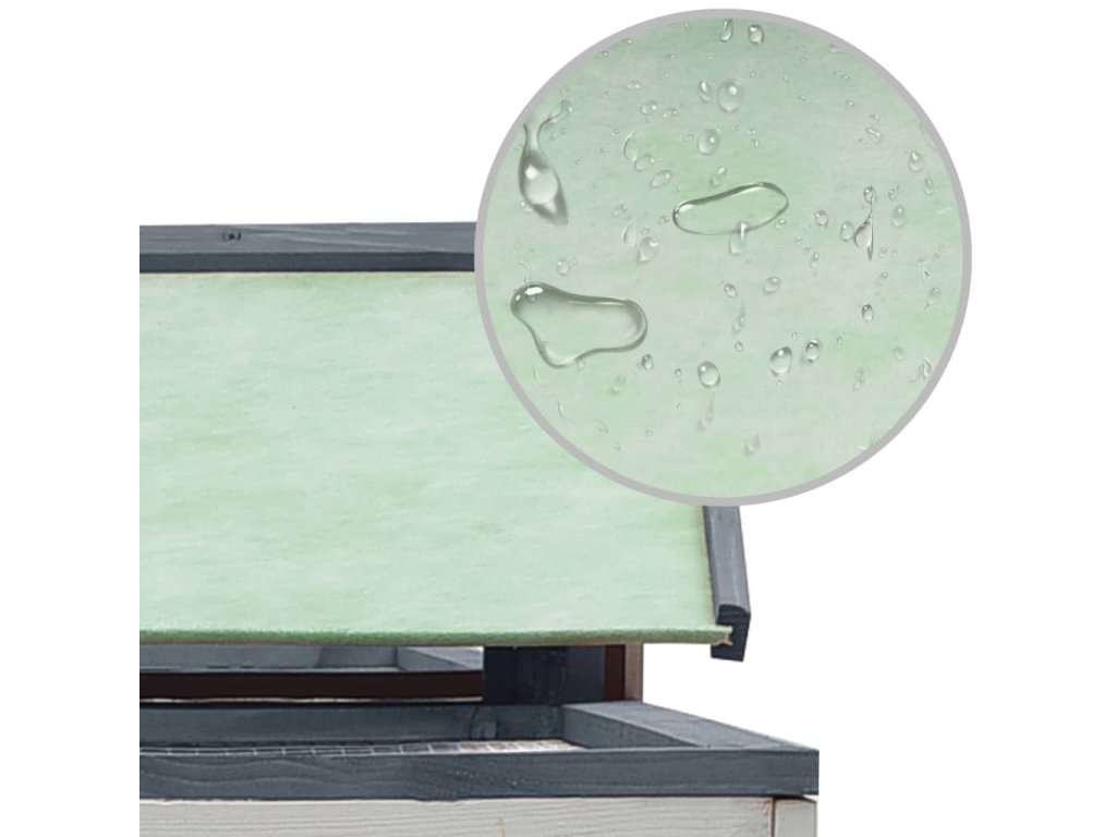 - Střecha potažená voděodolnou tkaninou (100% polyester)