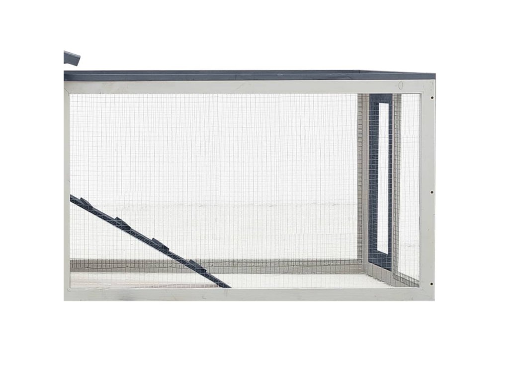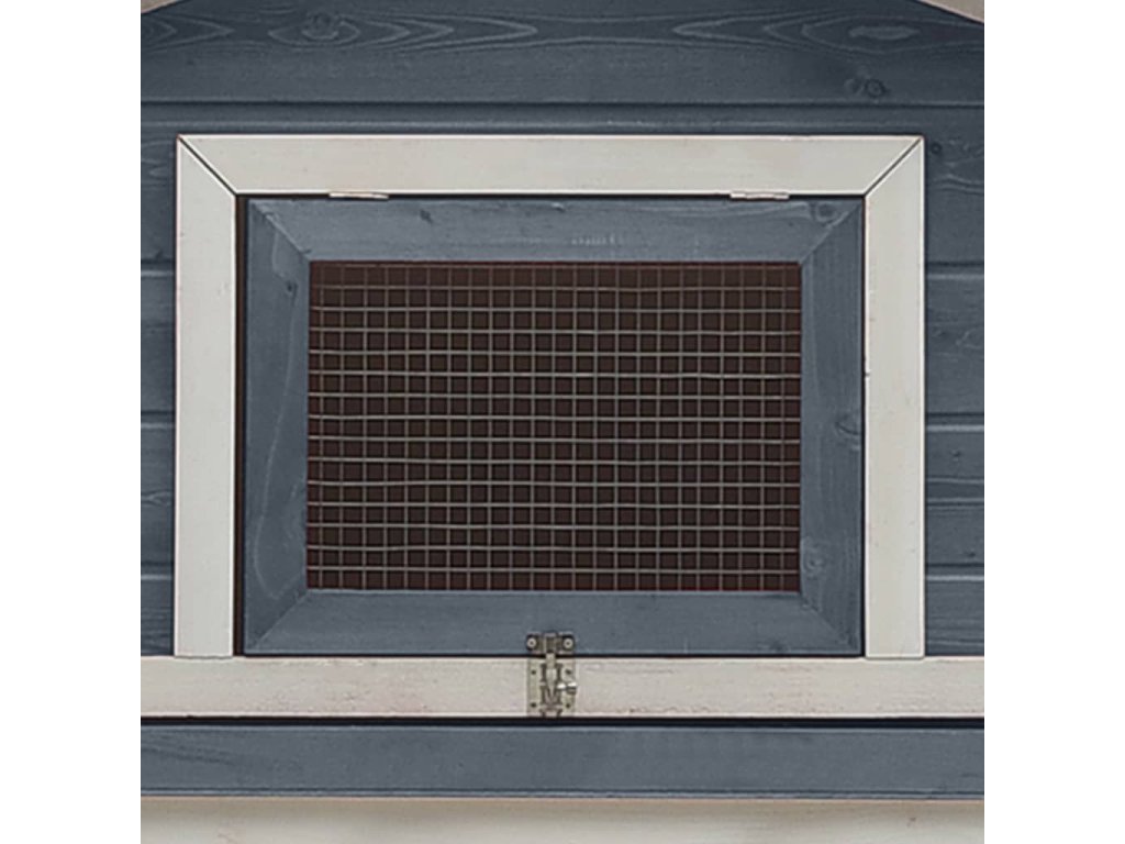 Králíkárna poskytne vašim zvířátkům spoustu místa k pohybu, zatímco husté pletivo z železných drátů zabrání neplechám a nečekaným nehodám. Mřížka vám navíc umožní mazlíčky neustále sledovat a zajistí volné proudění čerstvého vzduchu uvnitř klece. Králíkárnu tvoří vysoce kvalitní dřevěný rám, je proto pevná, bezpečná a vydrží dlouhá léta používání. Zelená střecha chrání obyvatele před deštěm. V útulném domečku se vaši králíci krásně vyspí. Ze spodního do horního patra vede rampa, po níž mohou zvířata snadno vyšplhat nahoru. Výsuvné dno klece usnadňuje její čištění. Dvířka lze jednoduše zavřít a zajistit zasouvacími západkami.