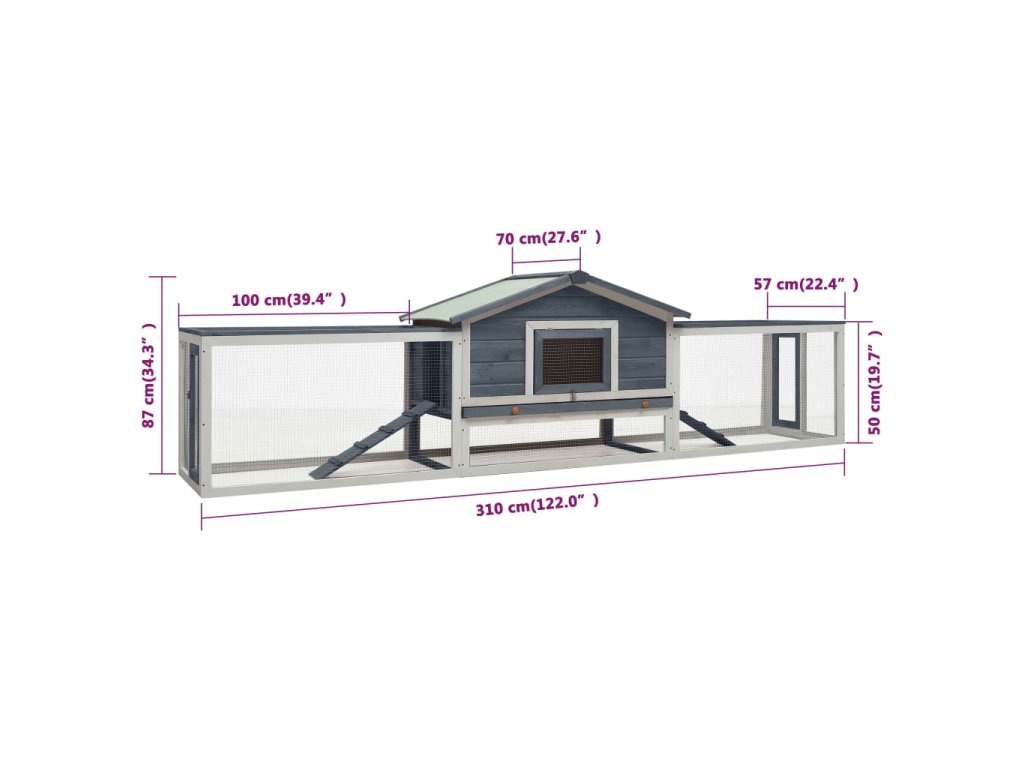 Králíkárna šedá 310x70x87 cm masivní borové a jedlové dřevo 170858