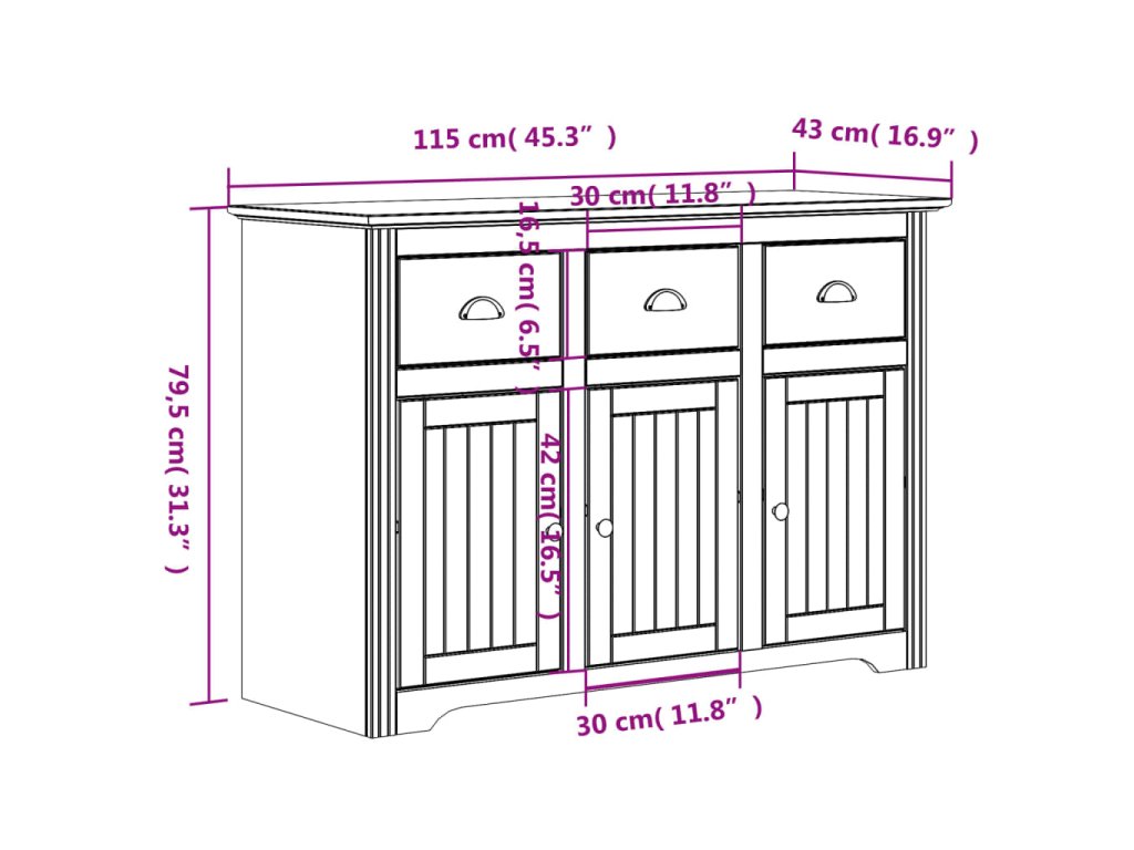 - Rozměry příborníku: 115 x 43 x 79,5 cm (D x Š x V)