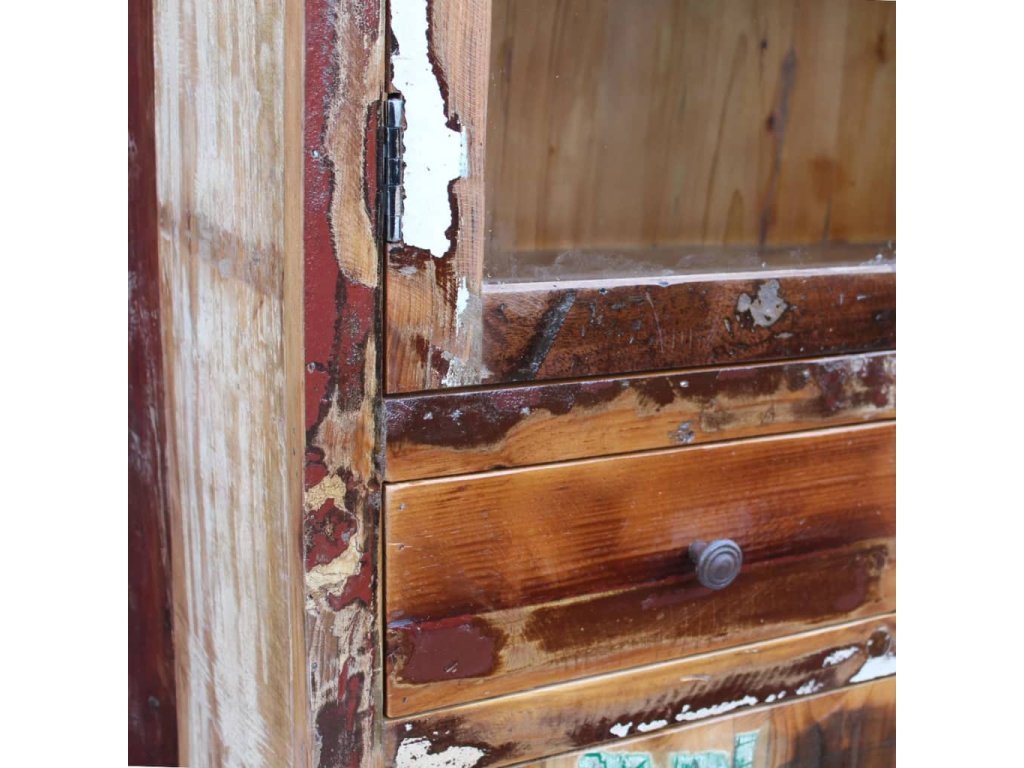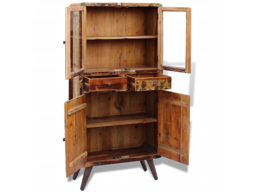 Vysoká skříňka je vyrobená z recyklovaného dřeva, je pevná, odolná a krásná a má vlastnosti různých dřevin, jako je teakové dřevo, mangovníkové dřevo, akácie, recyklované dřevo, tvrdé dřevo atd. Každý kus tohoto nábytku je unikátní a lehce odlišný od všech ostatních. Známky opotřebení a zřetelná kresba dřeva zase vypovídají o bohaté historii a každému kusu dodávají autentický vzhled.