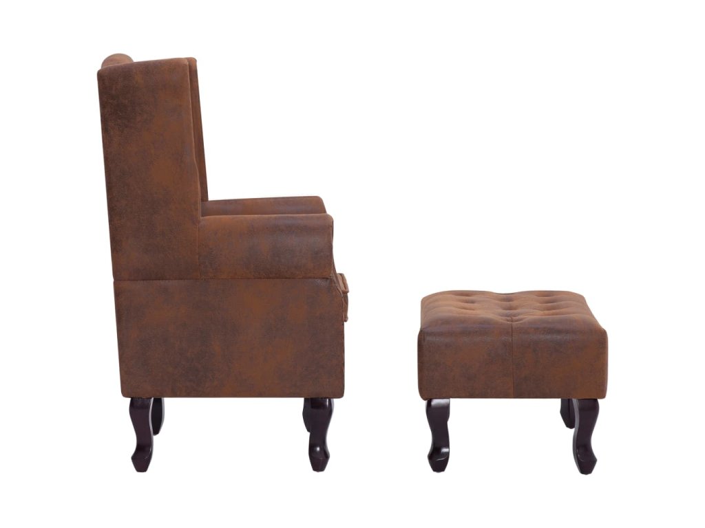 Křeslo chersterfield a podnožka hnědé umělá semišová kůže 281277