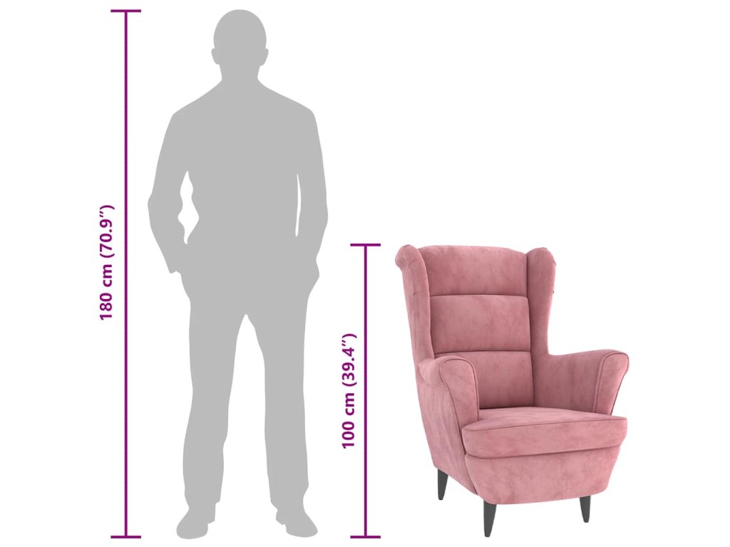 Křeslo je čalouněné sametem, je tedy velmi hebké na dotek a má dlouhou životnost. Stabilitu zajišťuje rám z překližky. Polstrované opěradlo a sedák vám zajistí pohodlné posezení.