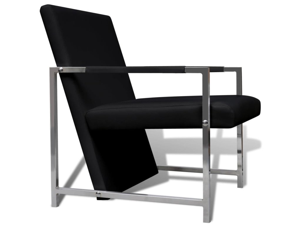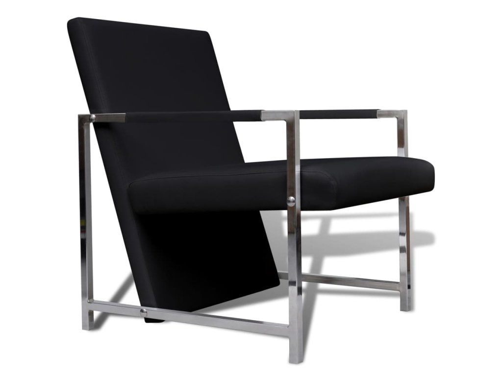 Křeslo s chromovanými nohami černé umělá kůže 241006