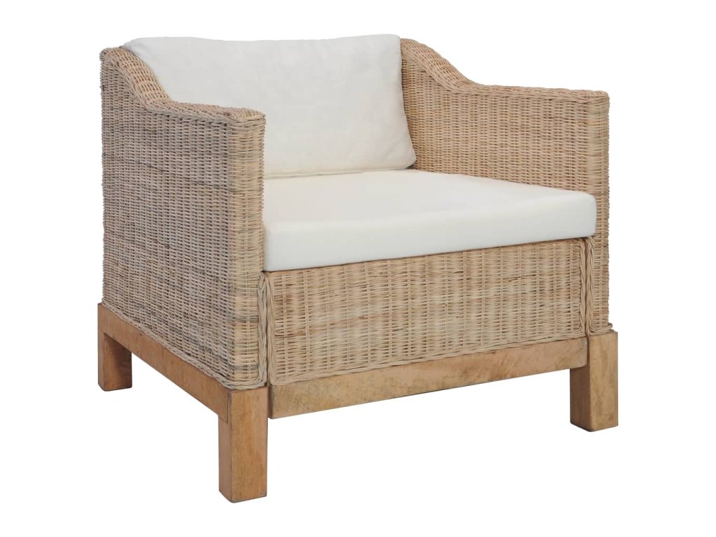 Křeslo je vyrobené z pravého ratanu, je tudíž odolné, skvěle se hodí pro každodenní použití a zároveň se snadno čistí. Má robustní dřevěný rám, který má dlouhou životnost a je mimořádně stabilní. Tlusté podušky na sedák a na opěradlo se dobře přizpůsobují vašemu tělu a jejich snímatelné potahy se dají prát.