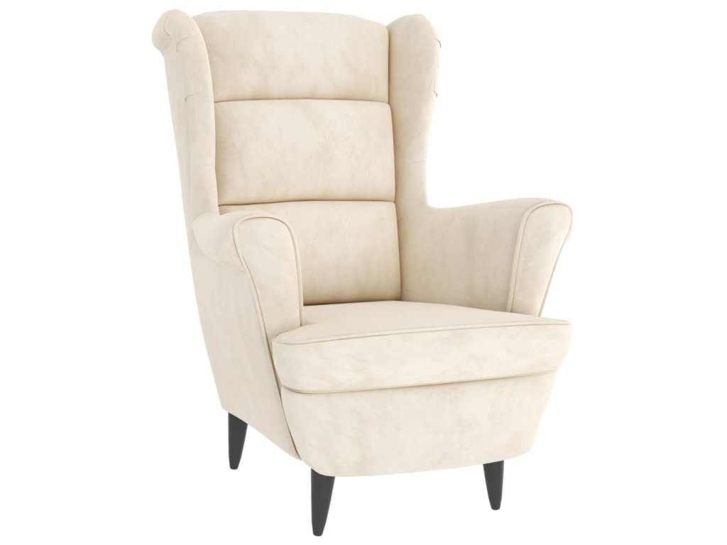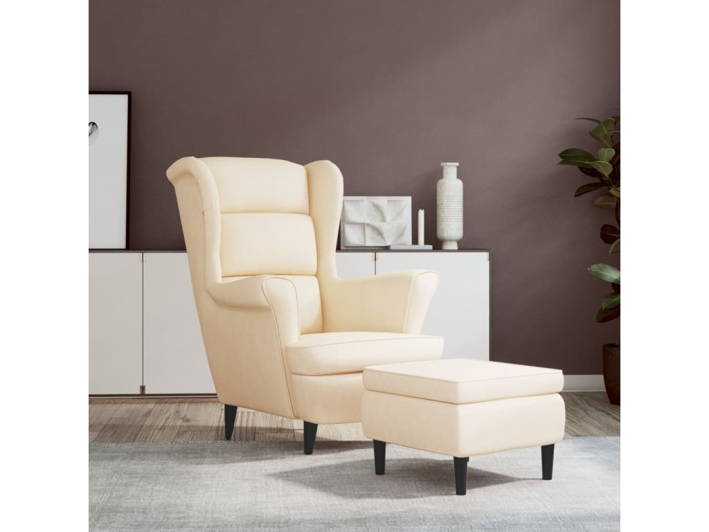 Křeslo ušák se stoličkou krémové samet 3115940