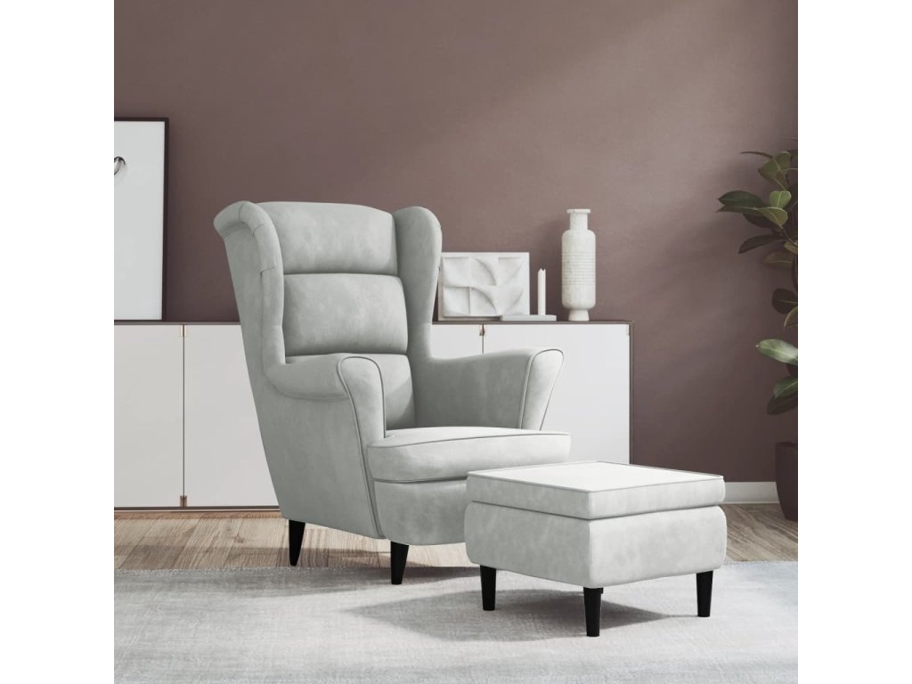 Křeslo ušák se stoličkou světle šedé samet 3115931