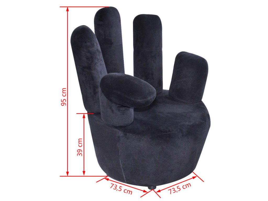 Křeslo ve tvaru ruky černé samet 241730