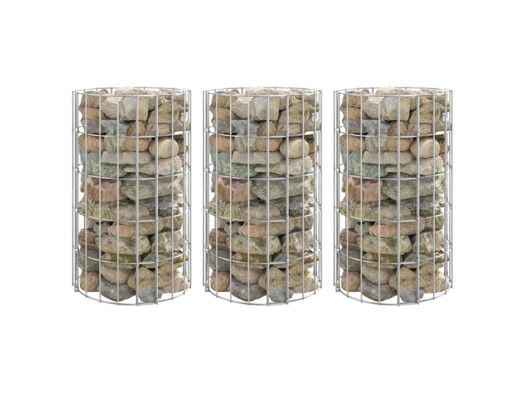 Kruhové gabionové záhony 3 ks pozinkovaná ocel Ø 30 x 50 cm 152019