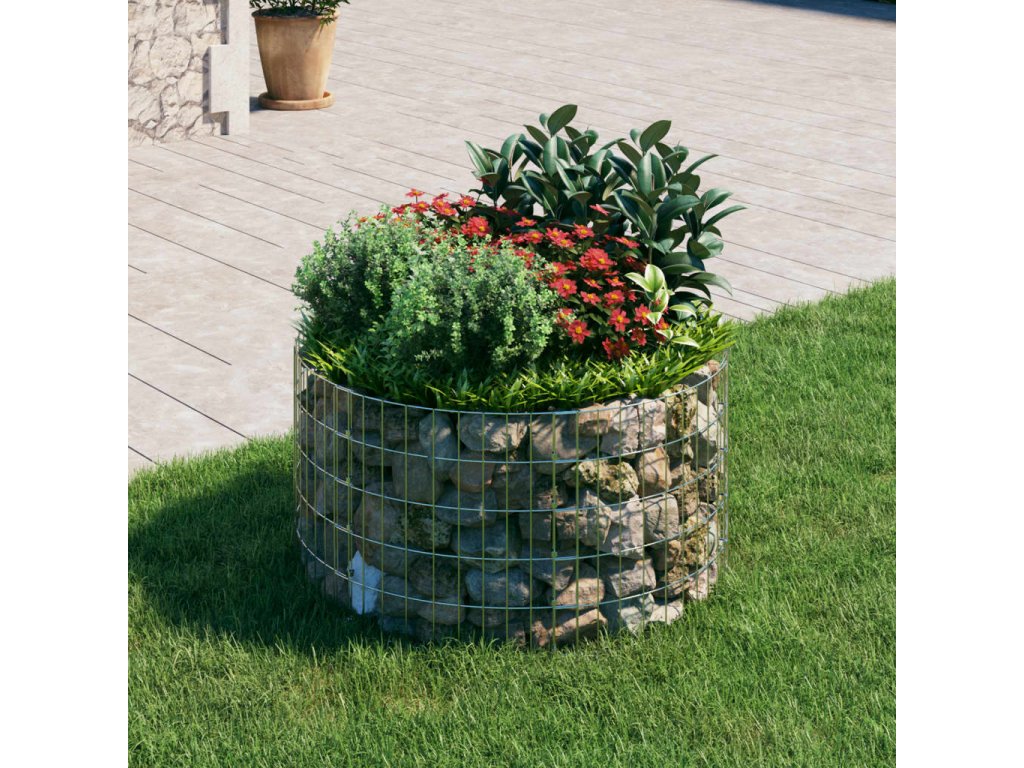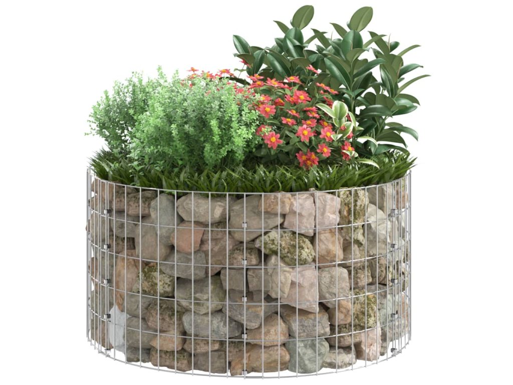 Tento kruhový gabionový sloupek představuje praktický způsob, jak vytvořit pevný okraj pro rostliny na vaší zahradě a terase.