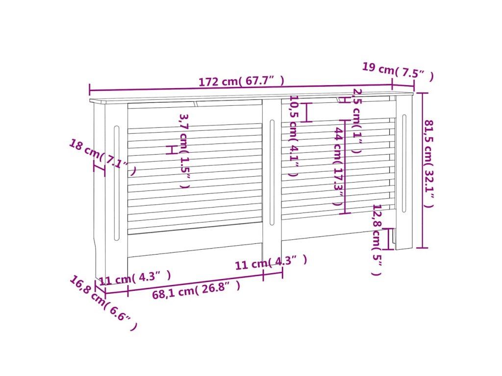 Tento kryt na radiátor představuje jak stylový, tak praktický doplněk do vašeho obývacího pokoje. Je navržen tak, aby dodal vašemu topení dekorativní charakter a zároveň vám poskytl více prostoru pro vaše zarámované fotografie, knihy, ozdoby apod.