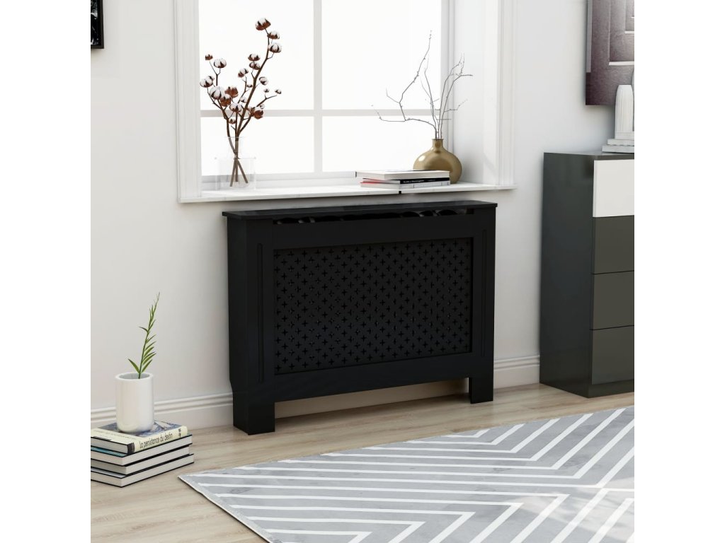 Kryt na radiátor černý 112 x 19 x 81,5 cm MDF 288192