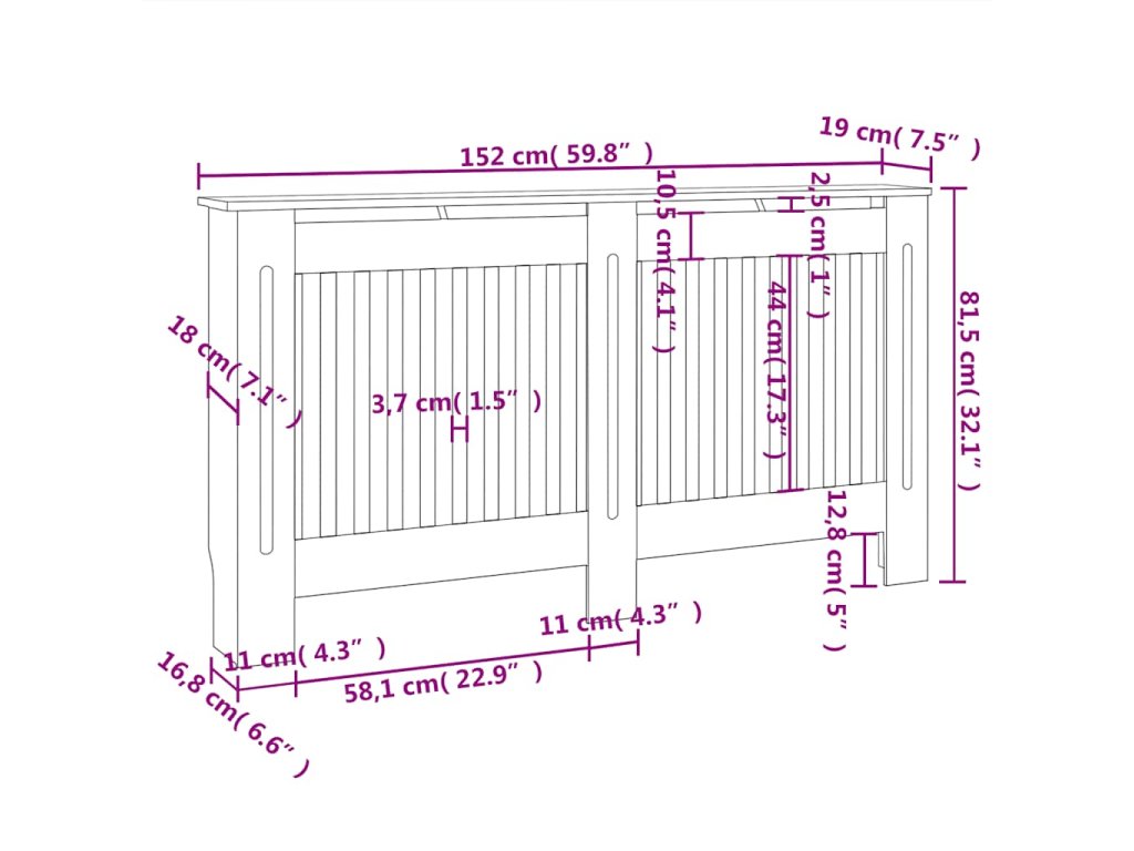 Tento kryt na radiátor představuje jak stylový, tak praktický doplněk do vašeho obývacího pokoje. Je navržen tak, aby dodal vašemu topení dekorativní charakter a zároveň vám poskytl více prostoru pro vaše zarámované fotografie, knihy, ozdoby apod.