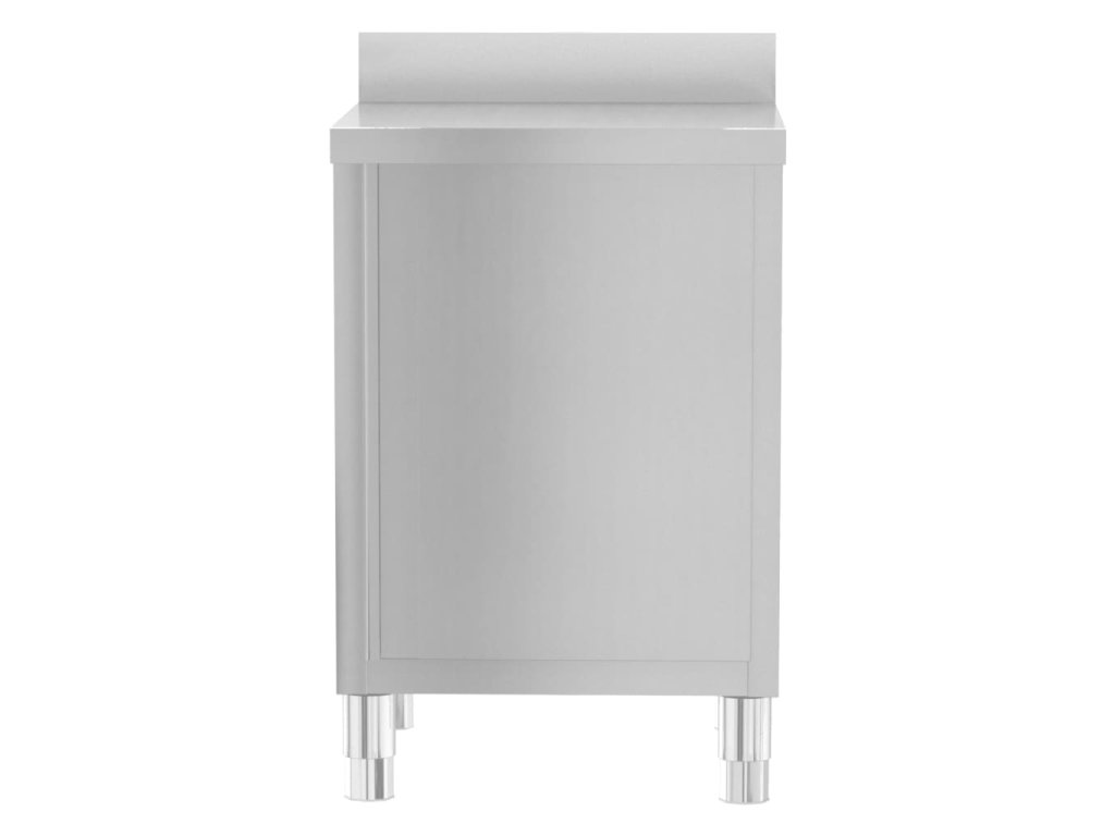Tato úložní skříňka je vyrobená z kvalitní nerezové oceli a je robustní, antikorozní a snadno se čistí. Skříňka poskytuje dostatek úložného prostoru pro úklidové vybavení a příslušenství. Nastavitelné nožičky umožňují vyrovnat skříňku i na nerovné ploše. Součástí skříňky je 10 cm vysoký zadní lem a otvor na vodní trubku.