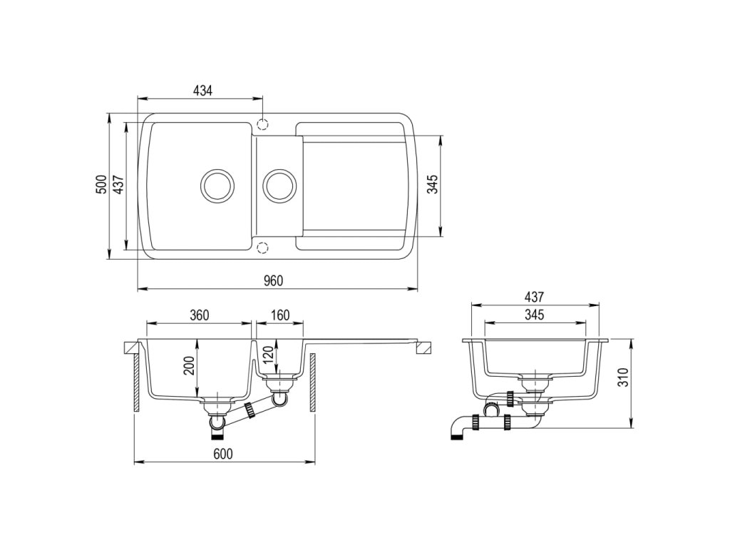 - Rozměry malého dřezu: 160 x 345 x 120 mm (D x Š x H)