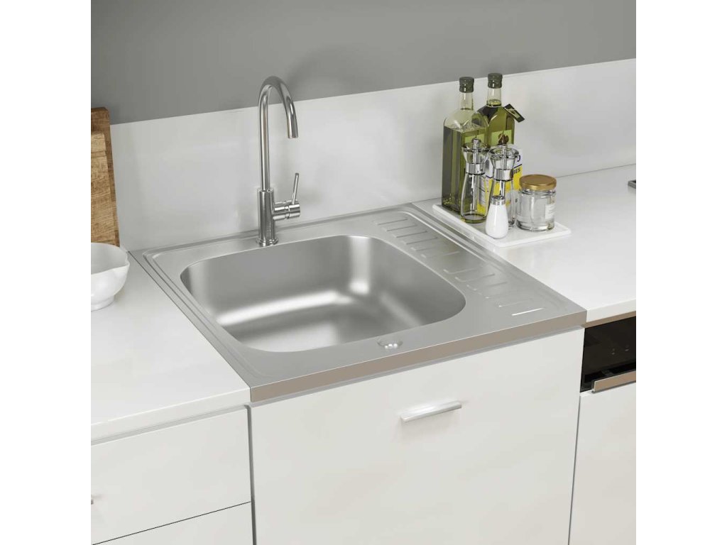 Kuchyňský dřez s odtokem stříbrný 600x600x155 mm nerezová ocel 147231