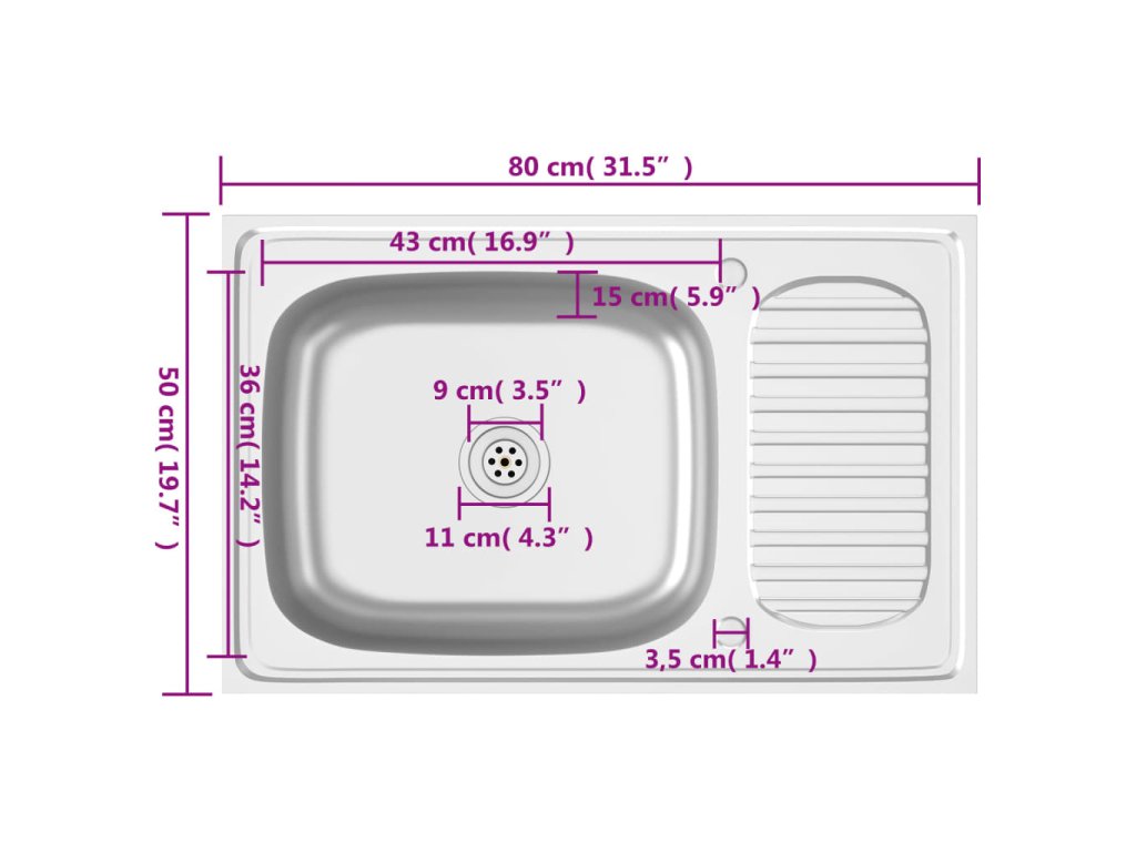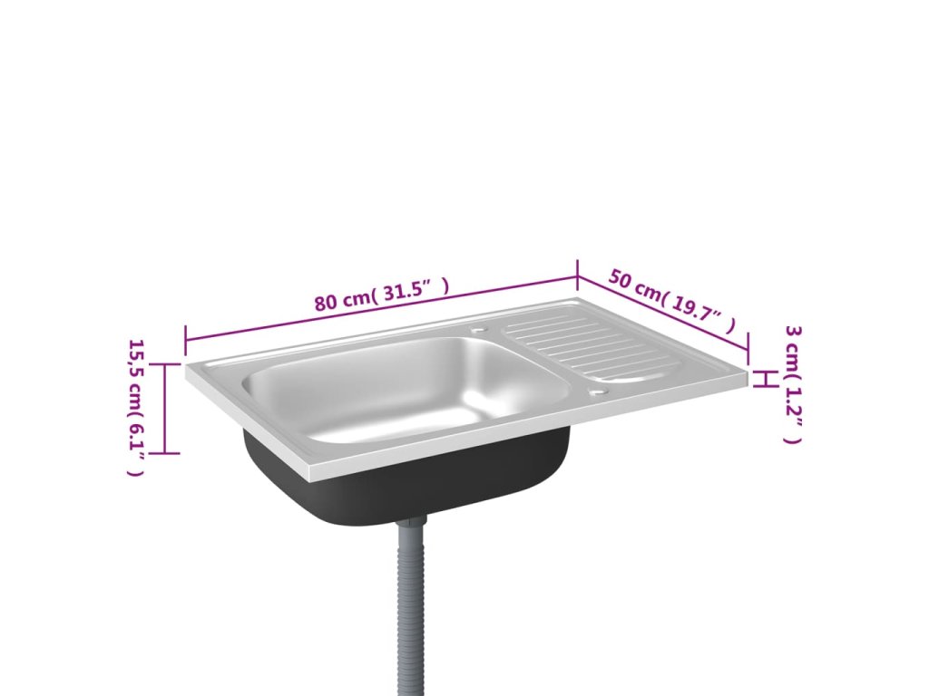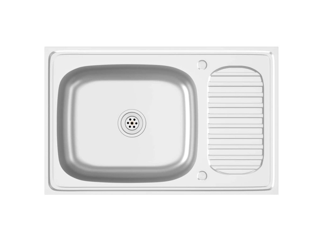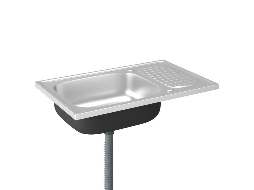 Dřez je vyroben z nerezové oceli, takže výborně vzdoruje teplu, poškrábání a nárazům a také se snadno čistí. Dřez s extra silnými bočními panely je určený pro montáž shora na skříňku. Praktický odkapávač slouží k odkládání umytého nádobí. Je vybaven odtokovým potrubím a otvory na vodovodní baterii na obou stranách, takže se může umístit na jakoukoli stranu.Jelikož je dřez plně oboustranný, lze jej umístit na levou, nebo na pravou stranu.