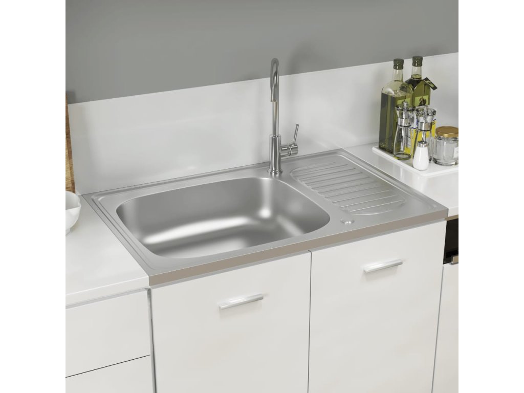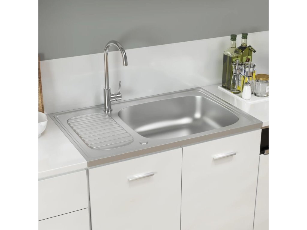 Kuchyňský dřez s odtokem stříbrný 800x500x155 mm nerezová ocel 147232