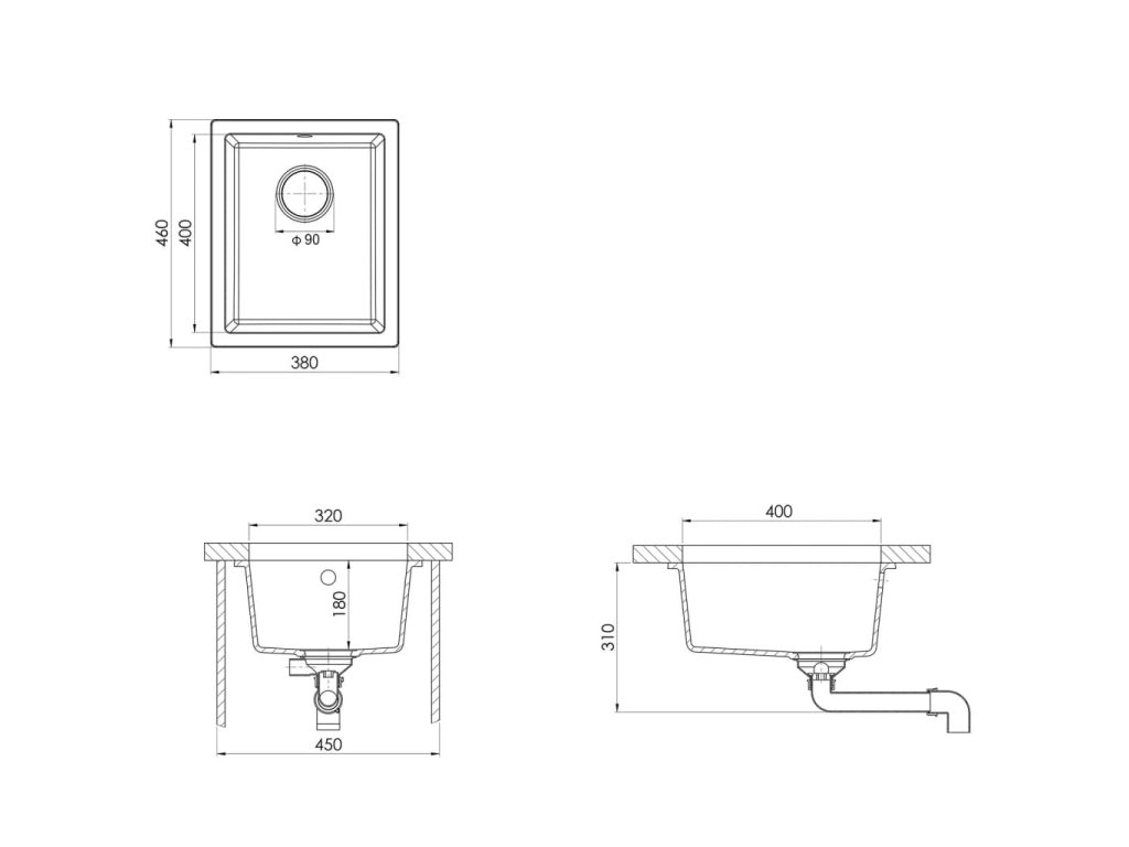 - Rozměry dřezu: 320 x 400 x 180 mm (Š x H x V)
