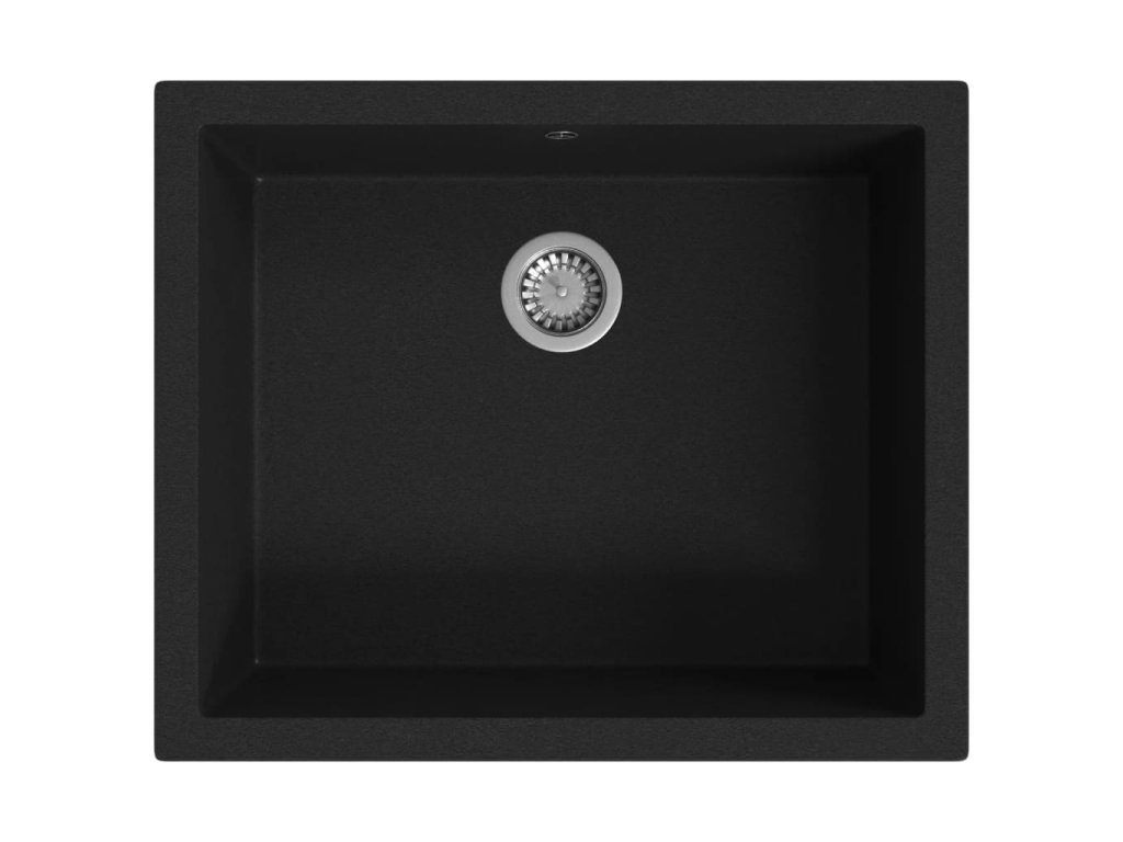 Dřez je vyroben ze žuly, takže výborně vzdoruje teplu, poškrábání a nárazům a také se snadno čistí. Součástí je také sítko pro snadné odstranění nečistot. Přepadový otvor má průměr 90 mm.