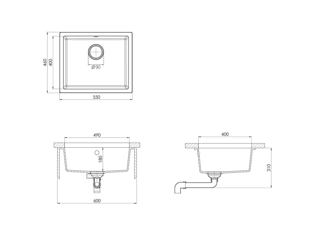 - Rozměry dřezu: 490 x 400 x 180 mm (Š x H x V)