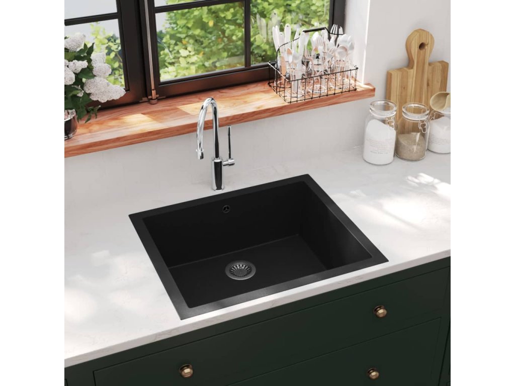 Tento žulový kuchyňský dřez je skvělým nadčasovým doplňkem do vaší kuchyně. Tvoří ho jedno extrémně hluboké umyvadlo s elegantním designem.