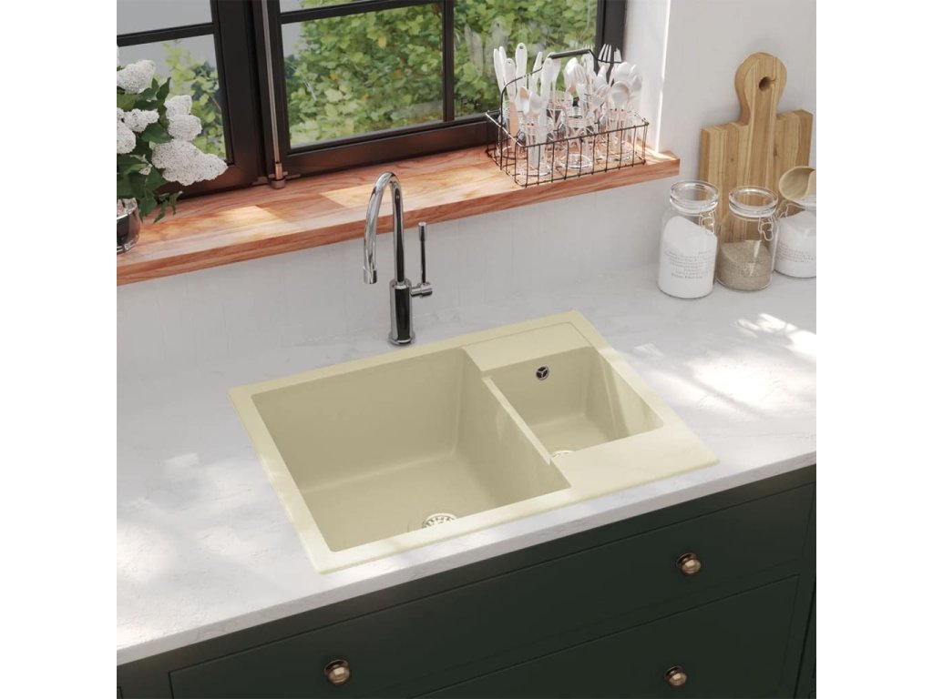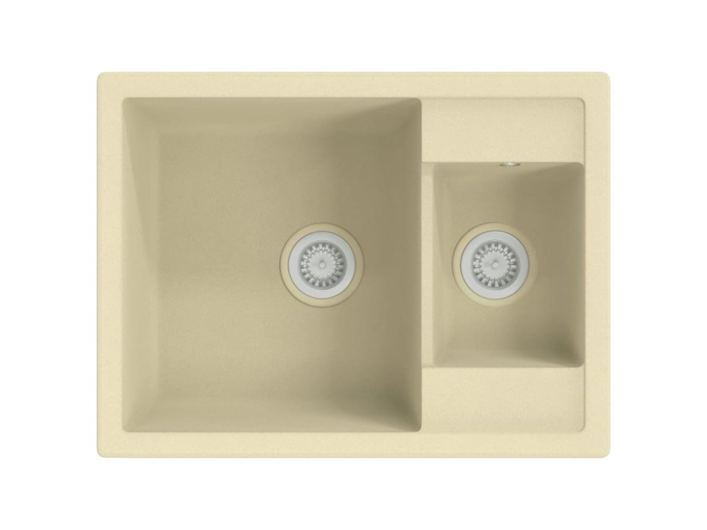 Kuchyňský dřez s přepadem otvorem dvojitý béžový žula 147087