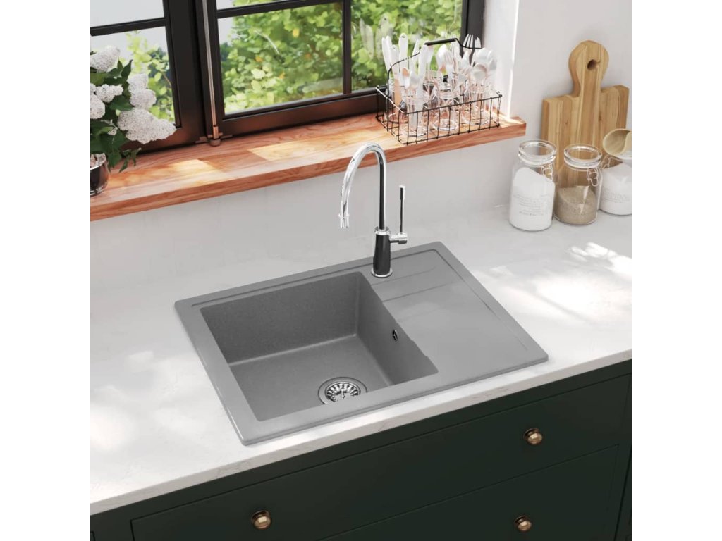 Dřez je vyrobený z žuly, a proto výborně vzdoruje teplu, poškrábání i nárazům. Navíc se snadno čistí. Postranní odkapávač vám poskytne spoustu místa na vaše nádobí. Produkt je oboustranný, můžete si tedy vybrat, zda chcete odkapávač na pravé nebo na levé straně od umyvadla. Součástí balení je také sítko pro nenáročné odklízení zbytků. Odtok má průměr 90 mm.