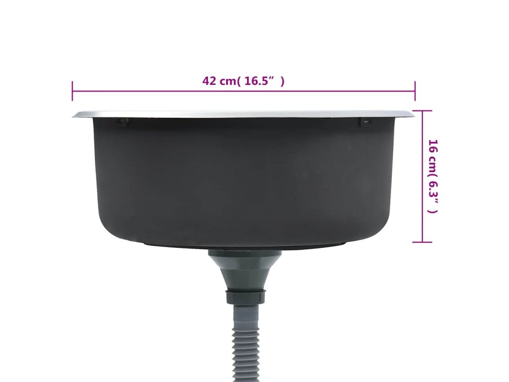 - Rozměry dřezu (bez sifonu): 42 x 16 cm (průměr x V)