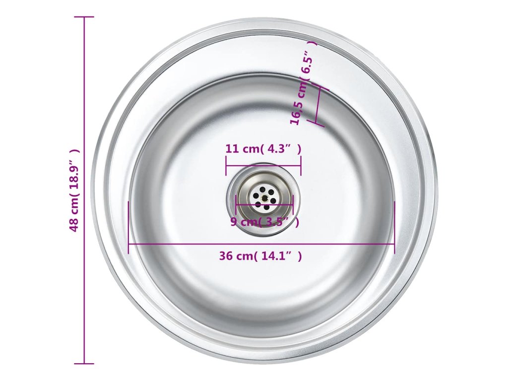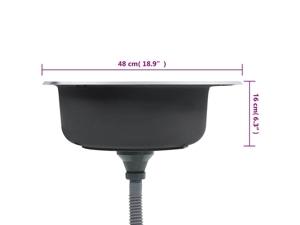 - Rozměry dřezu (bez sifonu): 48 x 16 cm (průměr x V)