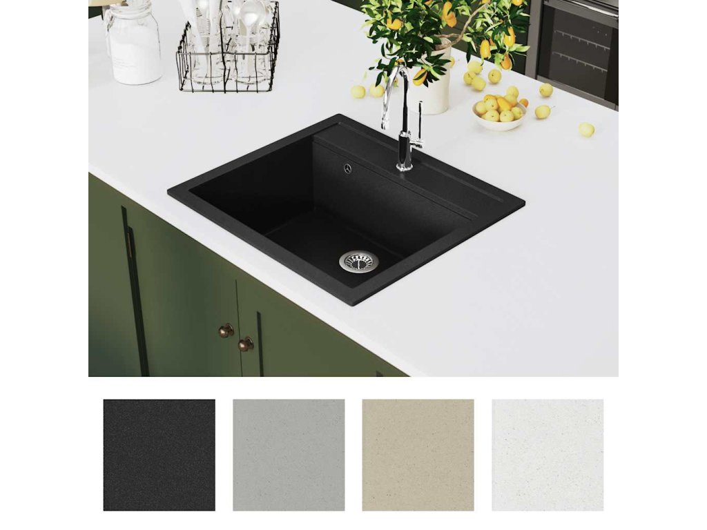 Vysoce kvalitní žula, díky které je dřez odolný vůči teplu, poškrábání i nárazům, se snadno čistí. Součástí balení je rovněž sítko na odpad pro snadné odstranění nečistot. Montáž dřezu je snadná.