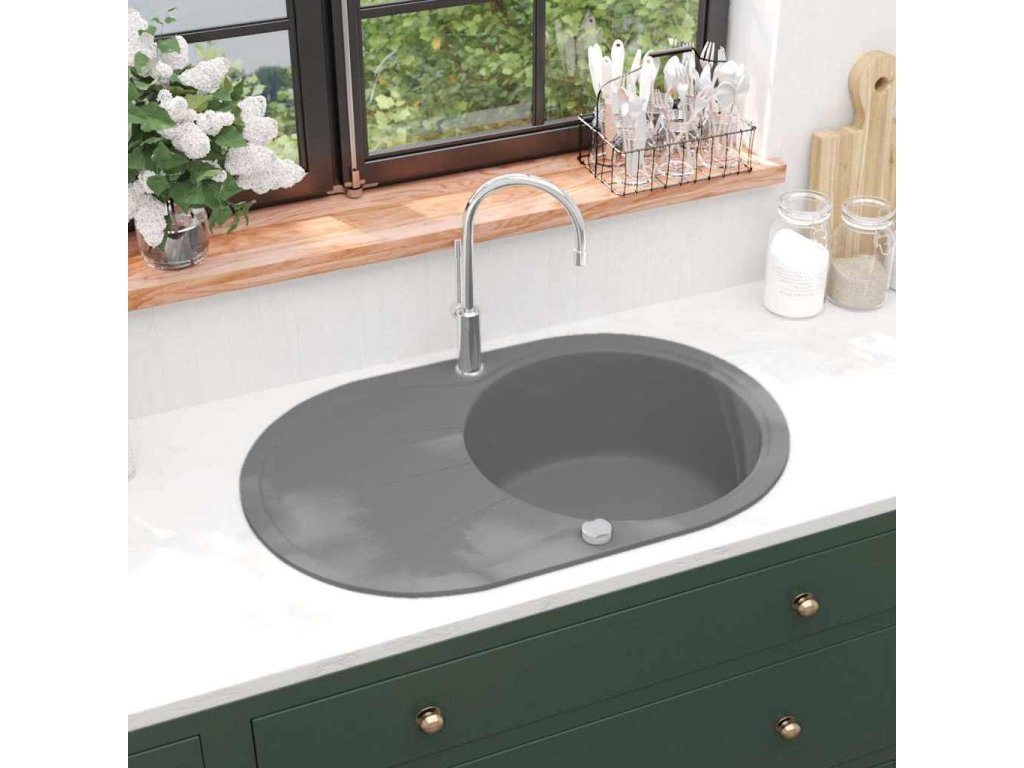 Dřez je zhotovený z vysoce kvalitní žuly, která je odolná vůči teplu, poškrábání a nárazům a snadno se čistí. Umyvadlo je oboustranné, což znamená, že jej lze namontovat na pravou i levou stranu. Přiložené sítko na odpad vám usnadní odstraňování nečistot. Montáž dřezu je snadná.