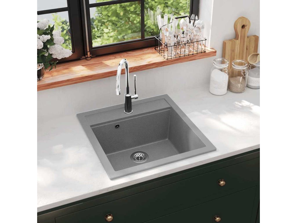 Použitá vysoce kvalitní žula činí dřez tepelně odolný, výborně vzdoruje poškrábání a nárazům a snadno se čistí. Částečně převrtaný otvor můžete snadno prorazit malým kladívkem nebo kulatým trubkovým nářadím a baterii nainstalovat. Mezitím můžete také otvor ponechat neporušený, čímž zůstane váš dřez kompletní, pokud již máte baterii na pracovní desce. Součástí je také sítko pro snadné odstranění nečistot.