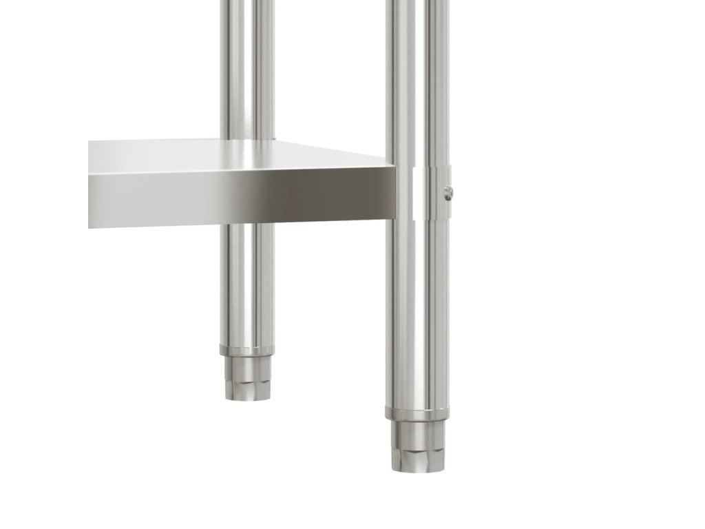- Odolná a stabilní konstrukce: Pracovní stůl je vyroben z nerezové oceli, výborně tedy odolává korozi a rzi a zaručí vám dlouhá léta používání. Hladký povrch se snadno čistí a udržuje, což zajišťuje hygienickou přípravu pokrmů.