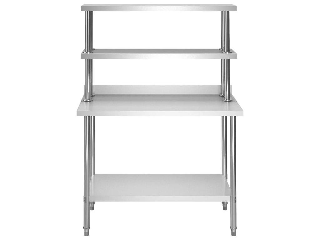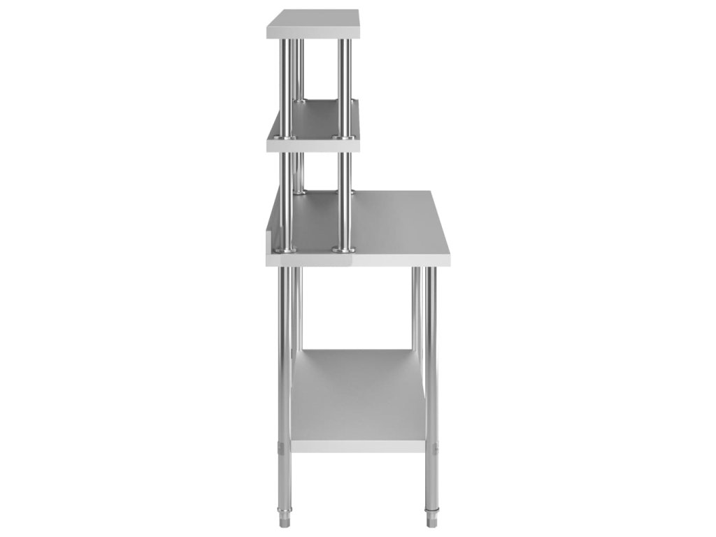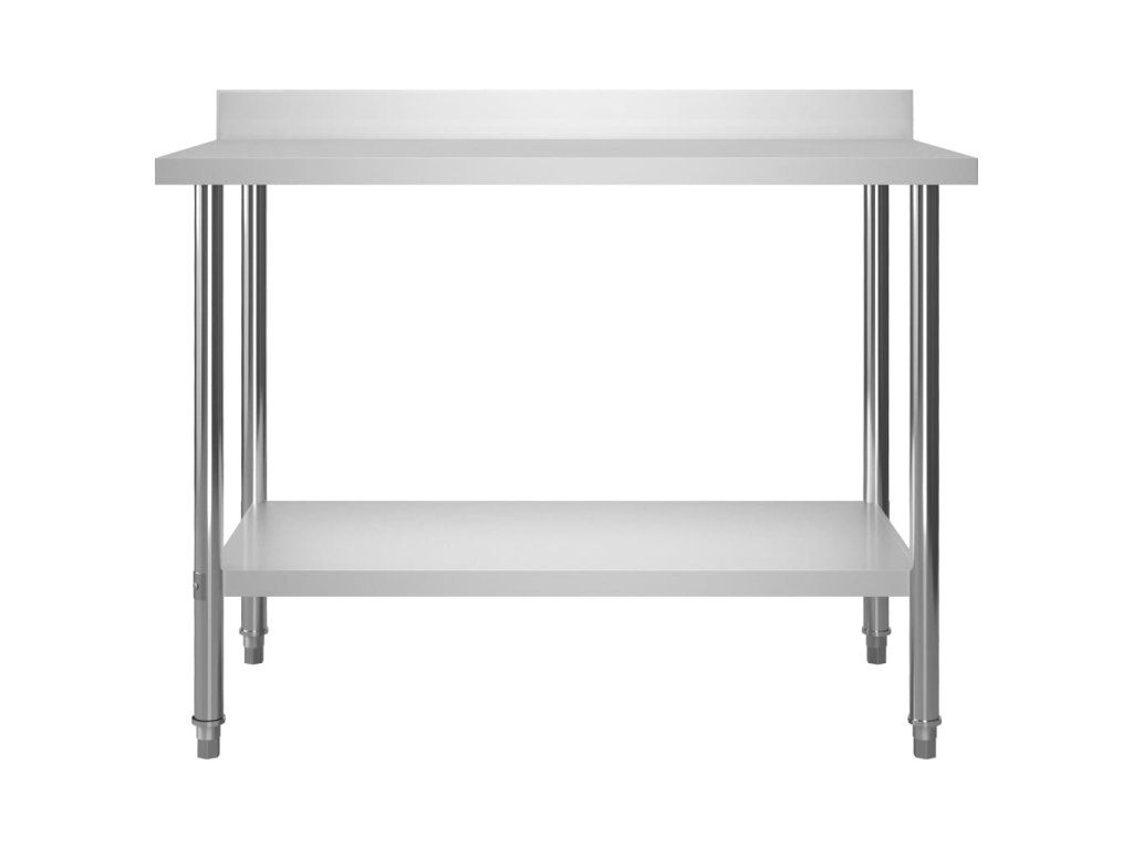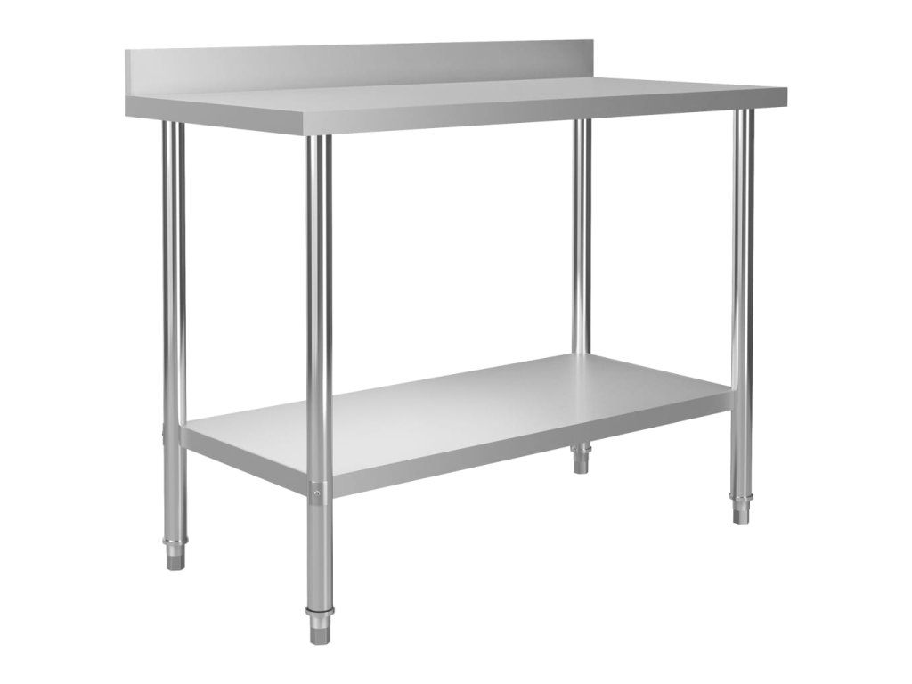 Gastronomický pracovní stůl je vyrobený z nerezové oceli vysoké kvality, a tak vydrží i každodenní náročné používání. Snadno se také čistí. Navíc je vybavený praktickou zadní obrubou, která zpříjemňuje jeho použití. Ve spodní části se nachází police, kde si můžete zorganizovat váš úložný prostor. Nohy s funkcí vyrovnávání mají neklouzavý design, který zaručuje skvělou stabilitu a zároveň chrání podlahu. Dvě horní police vám umožní využít plochu stolu na maximum.
