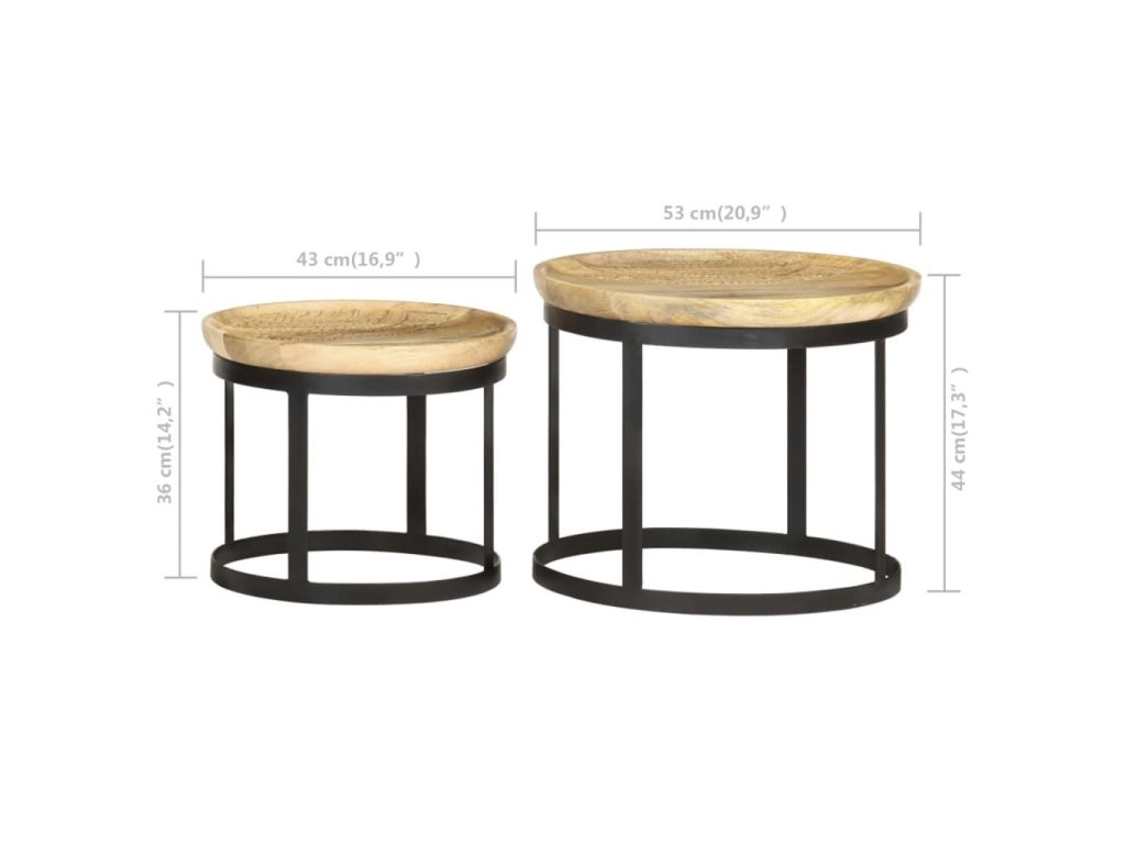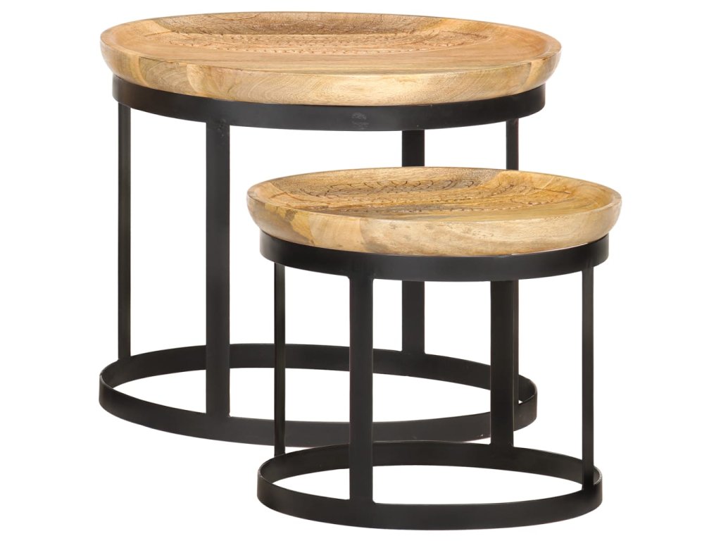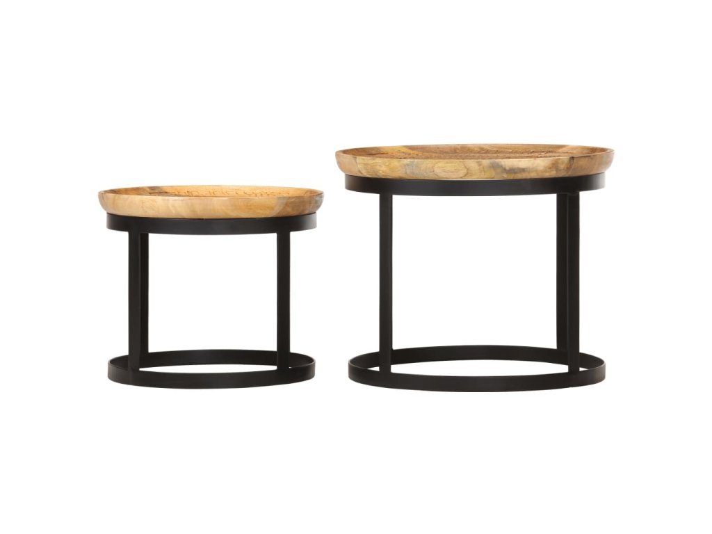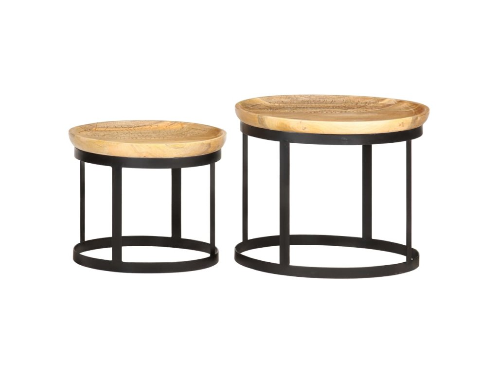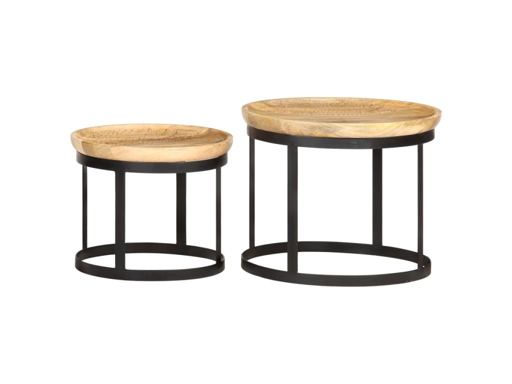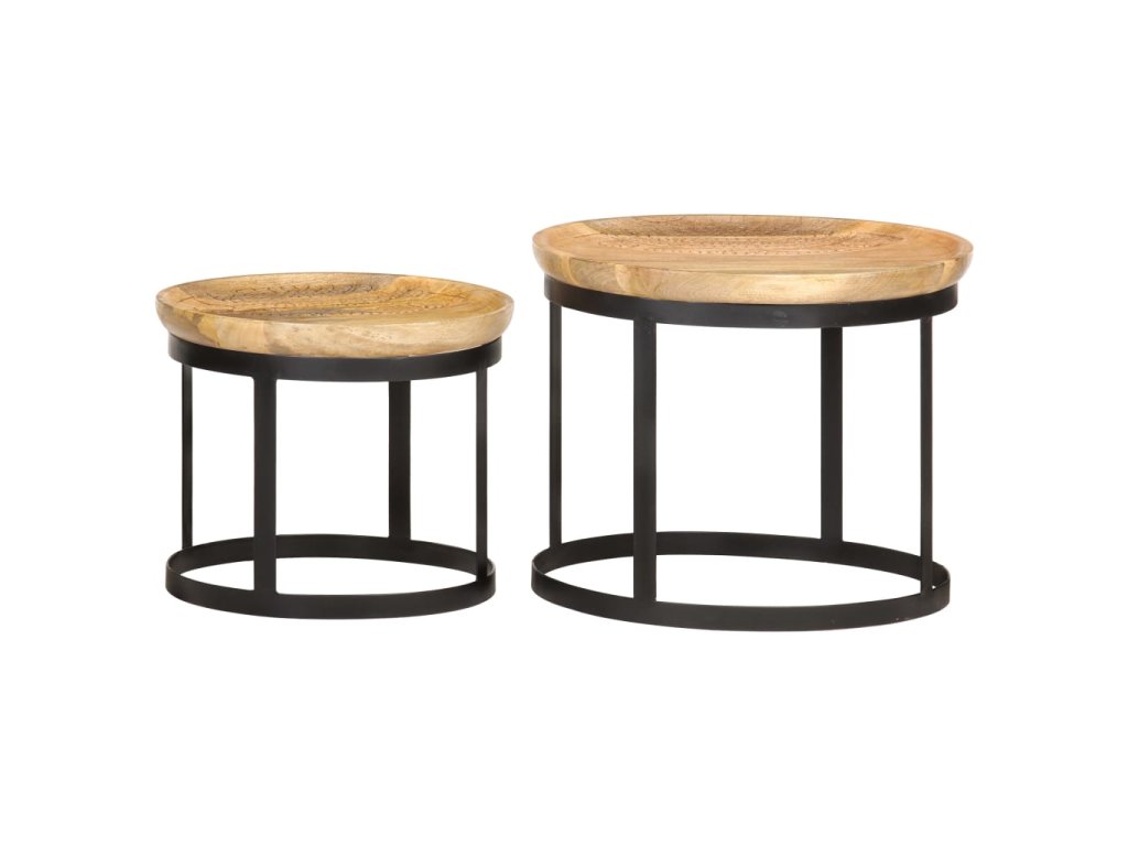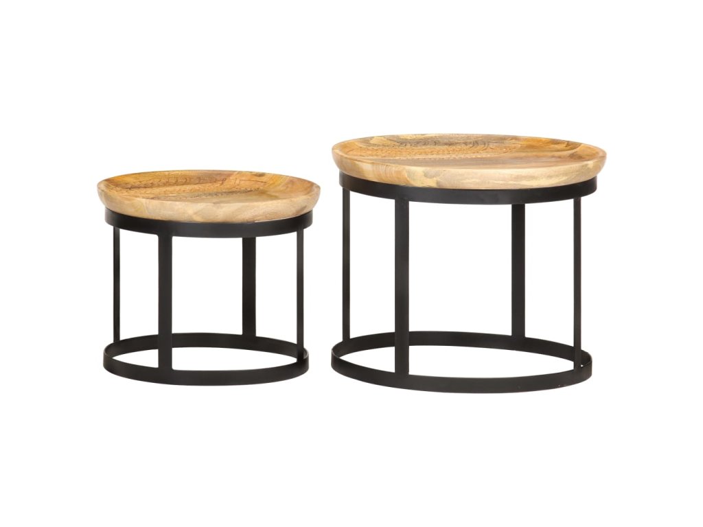 Kulaté odkládací stolky 2 ks masivní mangovníkové dřevo a ocel 286470