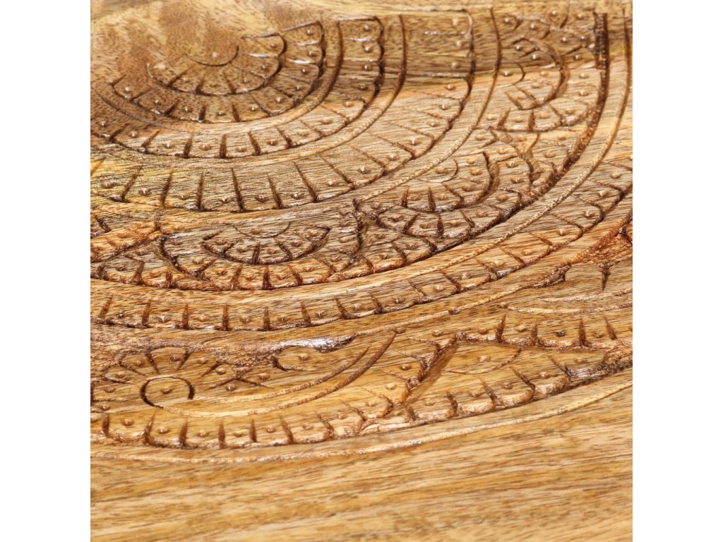 Tento dřevěný odkládací stolek má stolní desku z masivního mangovníkového dřeva a základnu z práškově lakované oceli, takže je robustní a stabilní. Řemeslné zpracování a krásná kresba dřeva dává každému kusu nábytku jeho jedinečný a od všech ostatních mírně odlišný charakter. Koncový stolek může také sloužit jako odkládací stolek, noční stolek nebo stolek do obývacího pokoje. Snadno se čistí vlhkým hadříkem.