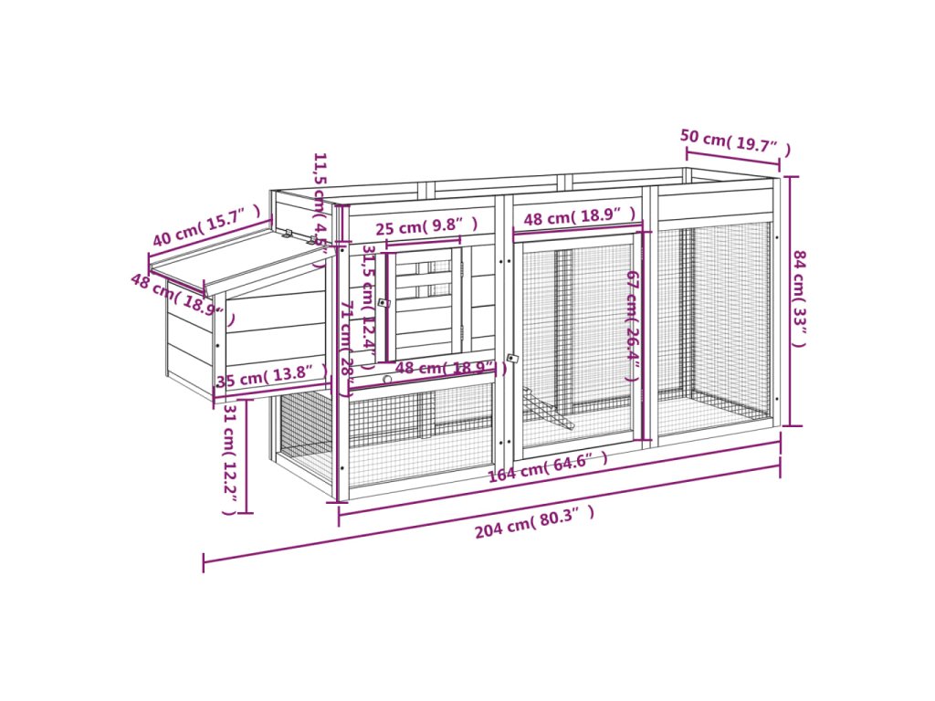 Kurník moka 204 x 50 x 84 cm masivní borové dřevo 172238