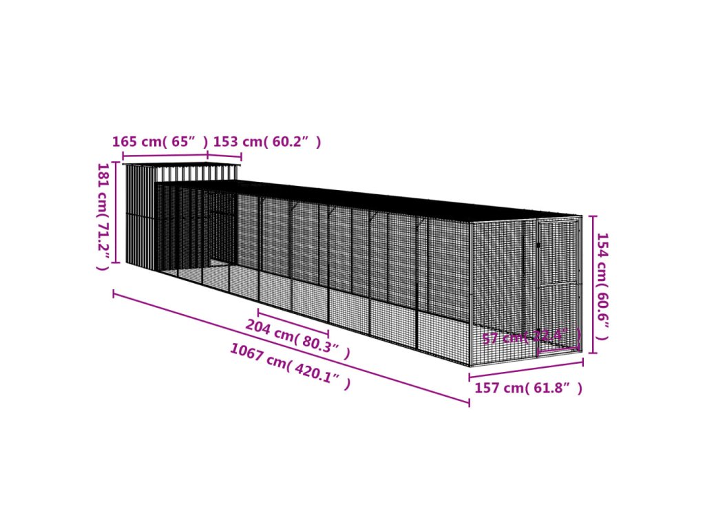 Kurník s výběhem antracitový 165x1 067x181 cm pozinkovaná ocel 3189112