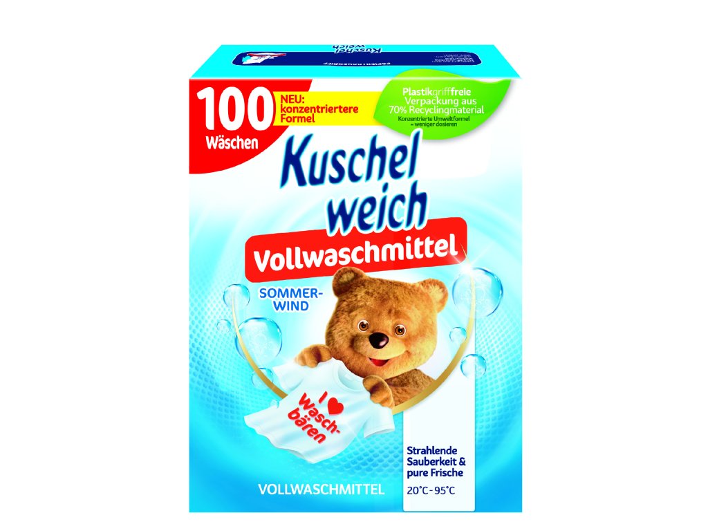 Kuschelweich prací prášek 100 dávek Sommerwind 5 kg pro měkké prádlo. Zářivá čistota a čistá svěžest. S aktivní schopností odstraňovat skvrny od teploty praní 20 ° C. Vhodný pro vaše bílé a stálobarevné prádlo, je obzvláště šetrný k vláknům a okouzlí vás nebeskou plyšovou jemnou letní vůní větru.