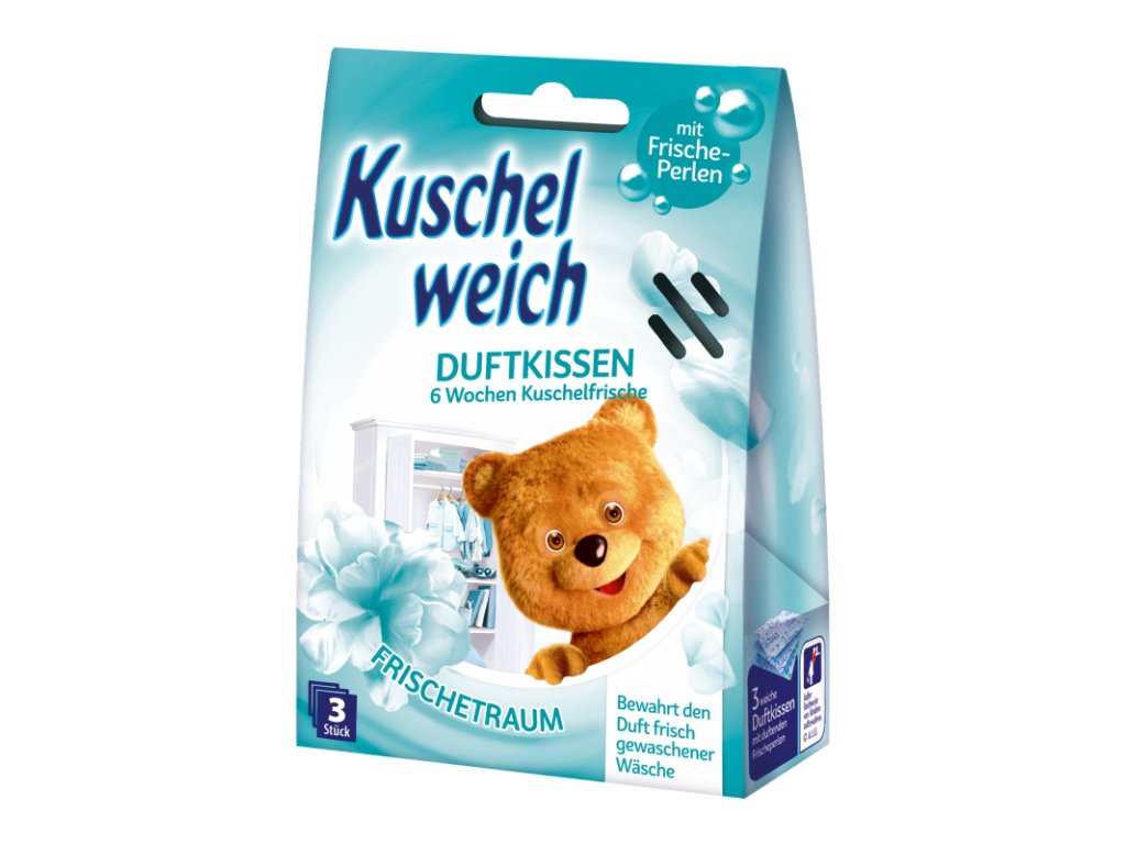 Kuschelweich vonné sáčky Frische Traum - tyrkysové. Pokud ale prádlo leží ve skříni dlouho může ztratit svoji svěžest po vyprání. Svěží perličky obsažené ve vonných sáčcích uvolňují po dobu až 6 týdnů příjemnou vůni. Celá skříň i oblečení tak získá na svěžesti. Balení obsahuje 3 sáčky, které se položí volně do skříně, nebo se zavěsí na ramínko. Vonný sáček voní až 6 týdnů, poté jej vyměníte za nový. Pozor nepoužívat do pračky, nebo do sušičky na prádlo.