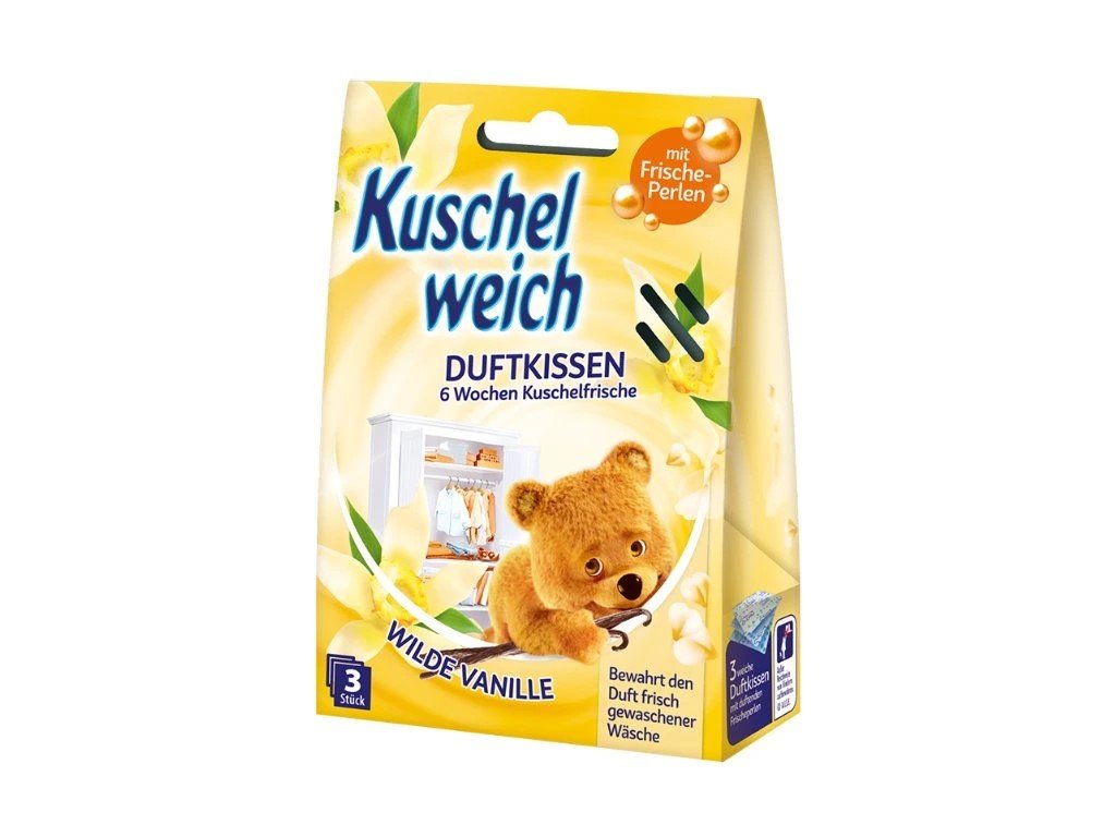 Vůně divoké vanilky: Kuschelweich vonné sáčky vydávají jemnou a příjemnou vůni divoké vanilky, která se jemně uvolňuje a přetrvává až 6 týdnů. To znamená dlouhotrvající svěžest pro vaše oblečení.