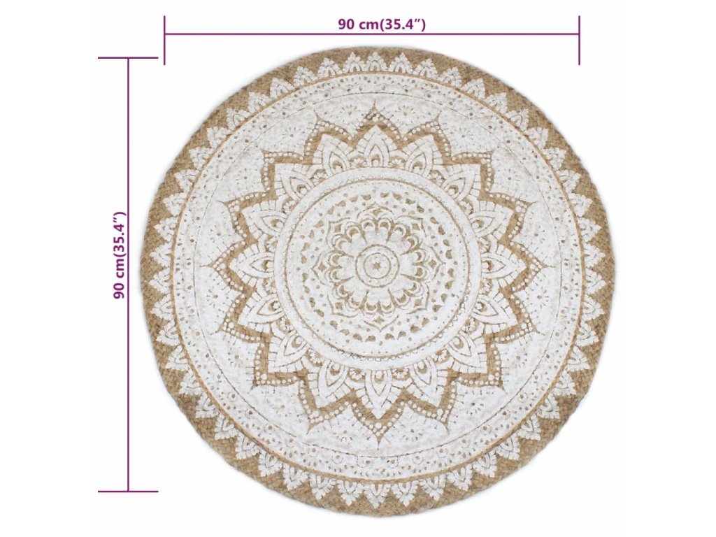 Kusový koberec ze splétané juty s potiskem 90 cm kulatý 245339