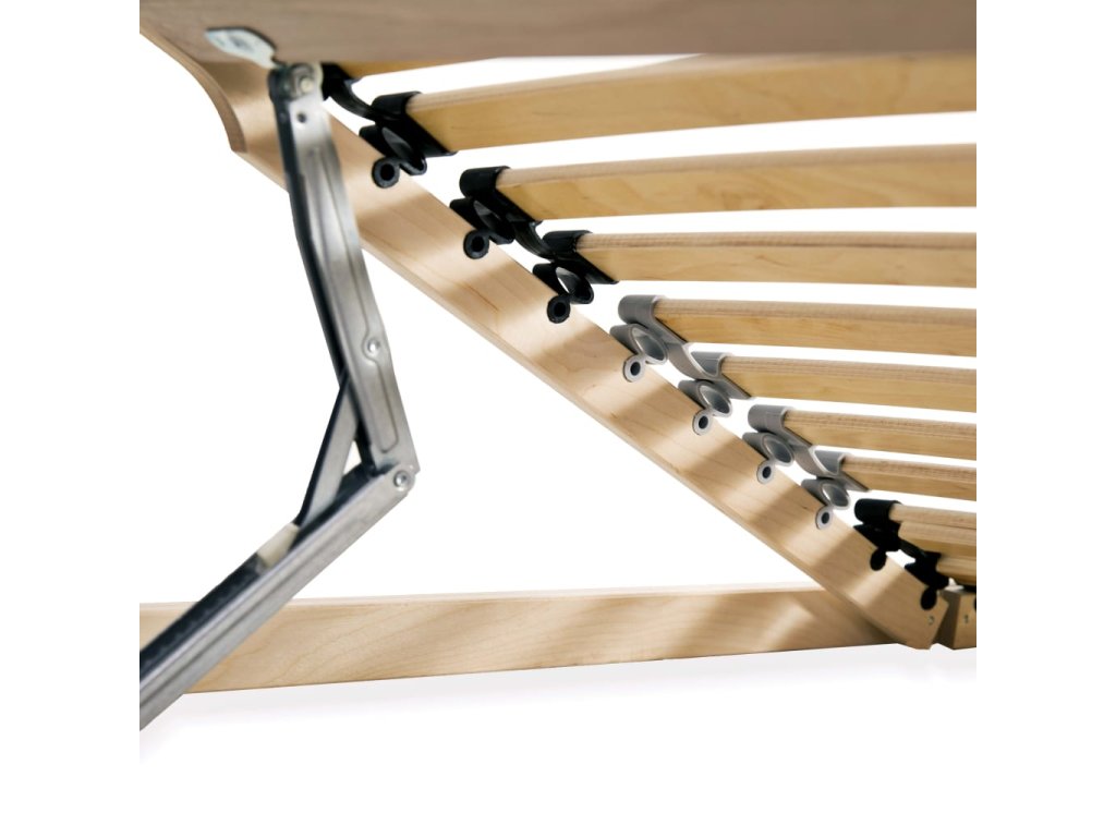 Rošt postele tvoří pevný a odolný rám z masivního bukového dřeva, který je doplněný březovými lamelami. Sedm komfortních zón poskytuje optimální podporu vašemu tělu. Oba konce lamel jsou držené na místě gumovými uzávěry SBS pro lepší stabilitu celé konstrukce. Pevnost roštu si můžete přizpůsobit vašim potřebám 4 nastavitelnými dvojitými lamelami ve středové zóně. Oblasti pod hlavou i pod nohama jsou nastavitelné, takže si můžete pohodlně číst nebo sledovat televizi. Montáž je snadná.