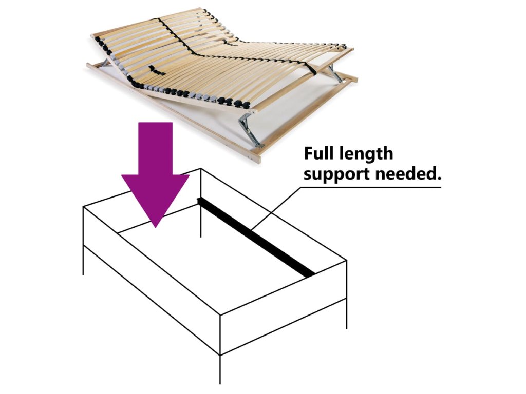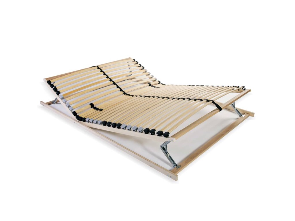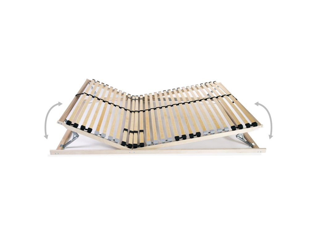 Rošt postele je díky rámu z masivního bukového dřeva a březovým lamelám pevný a odolný. Sedm komfortních zón poskytuje optimální podporu vašemu tělu. Oba konce lamel jsou drženy na místě gumovými uzávěry SBS pro lepší stabilitu celé konstrukce. Pevnost roštu si můžete přizpůsobit vašim potřebám díky 4 nastavitelným dvojitým lamelám ve středové zóně. Oblasti pod hlavou i pod nohama jsou nastavitelné, takže si můžete pohodlně číst nebo sledovat televizi. Montáž je snadná.