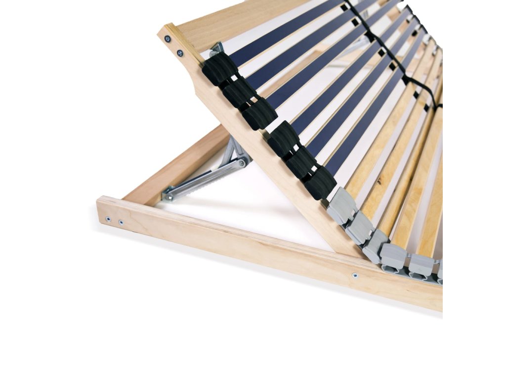Rošt postele s rámem z masivního bukového dřeva a břízovými lamelami je robustní a odolný. Sedm komfortních zón poskytuje tělu optimální podporu. Oba konce lamel jsou drží na místě gumové uzávěry SBS pro lepší stabilitu celé konstrukce. S pomocí 6 nastavitelných dvojitých lamel ve středové zóně si můžete pevnost roštu uzpůsobit svým potřebám. Pro vaše pohodlí je oblast pod hlavou nastavitelná. Montáž je snadná.