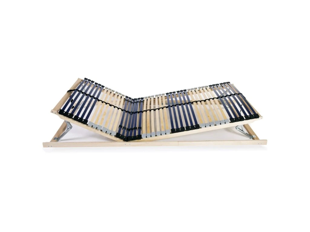 Rošt postele s rámem z masivního bukového dřeva a břízovými lamelami je robustní a odolný. Sedm komfortních zón poskytuje vašemu tělu optimální podporu. Oba konce lamel drží na místě gumové uzávěry SBS pro lepší stabilitu celé konstrukce. S pomocí 6 nastavitelných dvojitých lamel ve středové zóně můžete uzpůsobit pevnost roštu svým potřebám. Oblasti pod hlavou a pod nohami jsou nastavitelné pro vaše pohodlí. Montáž je snadná.