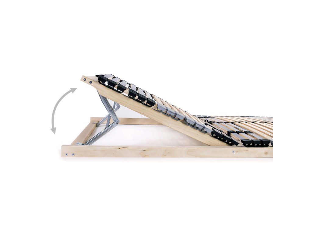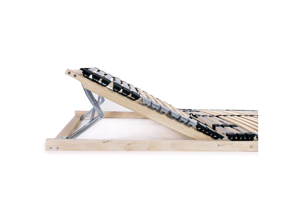 Rošt postele s rámem z masivního bukového dřeva a břízovými lamelami je robustní a odolný. Sedm komfortních zón poskytuje tělu optimální podporu. Oba konce lamel jsou drží na místě gumové uzávěry SBS pro lepší stabilitu celé konstrukce. S pomocí 6 nastavitelných dvojitých lamel ve středové zóně si můžete pevnost roštu uzpůsobit svým potřebám. Pro vaše pohodlí je oblast pod hlavou nastavitelná. Montáž je snadná.